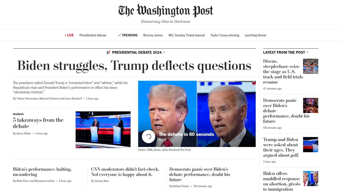 Një ditë pas debatit mes dy sfiduesve në Shtëpinë e Bardhë, mediat amerikane gjithsesi janë dakord për mungesën e efektivitetit të Biden, gjë që bie në sy dhe që shqetëson seriozisht Partinë Demokratike.
