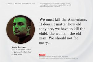 Asnjë spektator nuk lejohet sot të shikojë ndeshjet në shtëpi të Qarabag në Azersun Arena të Baku për shkak të pandemisë. Brenda stadiumit, në një mur të zbukuruar me flamuj të lënë nga kundërshtarët e së kaluarës, varet një kujtim i një klubi tjetër ish-sovjetik i privuar, për shkak të luftës, nga shtëpia e tyre: kampionët e Ukrainës të Shakhtar Donetsk që luajnë ndeshjet brenda diku tjetër që nga viti 2014. Në fushën e stërvitjes së klubit, lojtarët vrapojnë në hijen e tabelave gjigande që lajmërojnë komentet më të fundit të Presidentit Ilham Aliyev në Twitter, listat e zonave të humbura dhe të rikuperuara. Kjo nuk ka kaluar pa u vënë re në Jerevan. Federata Armene e Futbollit i bëri thirrje të shtunën për përjashtimin e Qarabag nga garat evropiane për komente, të fshira më vonë, të bëra nga një zyrtar i klubit në mediat sociale. Federata tha, në një deklaratë, se kishte depozituar ankesa të shumta në UEFA dhe FIFA rreth “publikimeve luftarake, sjelljes militariste dhe postimeve anti-armene të përfaqësuesve të ndryshëm të futbollit Azerbajxhan”.