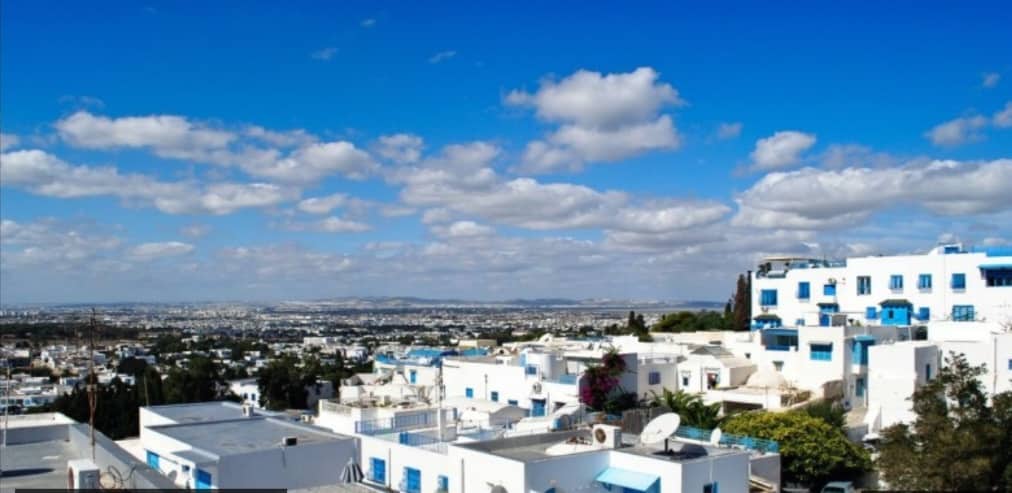 Sidi Bou Said në Tunizi, një qytet hijeshi plot dhe piktoresk, ku prej fillimit të shekullit të njëzetë hyri në fuqi ligji për t’i lyer shtëpitë me ngjyrë të bardhë dhe përdorimi i ngjyrës blu për dritaret dhe dyert e çdo ndërtese, sikurse për tendat dhe dekorimet.