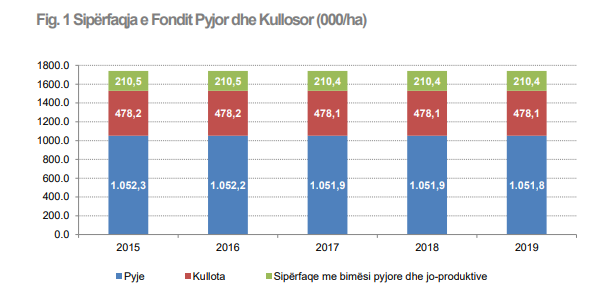 Në sipërfaqjen e fondit pyjor dhe kullosor në vitin 2019, si rezultat i dukurive natyrore dhe aktiviteteve njerezore, ka një rënie me rreth 17 (ha), krahasuar me vitin 2018.