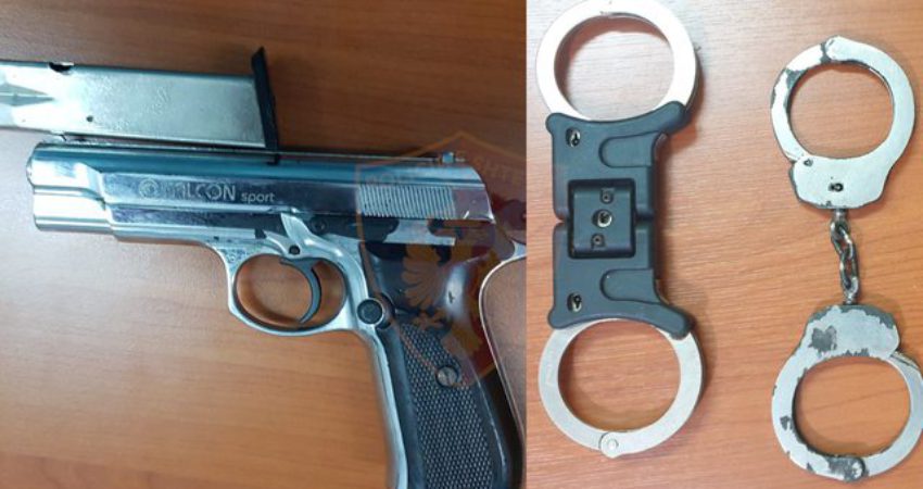 Ndërsa gjatë kontrollit në shtëpi i janë gjetur 2 palë pranga hekuri si ato të policisë, të cilat u sekuestruan në cilësinë e provës materiale.