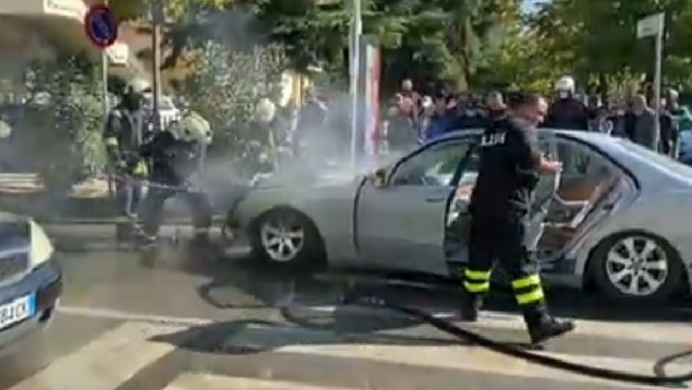 Një makinë tip “Benz” përfshihet nga flakët mëngjesin e kësaj të shtune në Durrës.