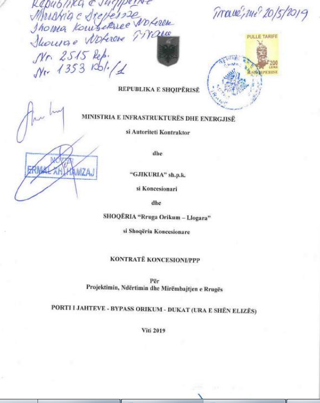 Kontrata me firmën Gjikuria për rrugën Portii Jahteve- By Pass- Orikum-Dukat, ndryshe nga projekti i parë me PPP, është pjesë e projektit të qeverisë “One Billion Euro”. Kjo rrugë do të ndërtohet nga “Gjikuria”, shpk si koncesionar dhe shoqërisë koncesionare “Rruga Orikum-Llogara”, shpk, për ndërtimin dhe mirëmbajtjen e këtij segmenti rrugor. Gjikuria është aksioner edhe tek të dy kompanitë. Referuar deklaratës së datës 21 mars 2019, qeveria në relacionin e saj bën të ditur se shoqëria do të investojë nga kapitali i saj shumën prej 21. 771.548 euro. Struktura e financimit përfshin një hua bankare prej 25. 585.166 euro, e cila do të merret nga një ose më shumë institucione financiare. Huaja do të përdoret tërësisht për të shlyer detyrimet që lidhen me ndërtimin e këtij aksi rrugor. Pagesat vjetore nga buxheti i shtetit, që do të fillojnë në vitin e dytë të projektit, do të jenë 2 113 000 euro dhe deri në vitin e trembëdhjetë me 1 896 171 euro. Gjithsej, vlera e projektit, që përben edhe vlerën totale të pagesave të disponueshmerisë nga buxheti i shtetit gjatë gjithë kohëzgjatjes së projektit, do të jetë 67 359 926 euro.