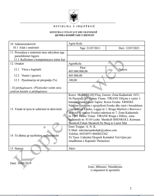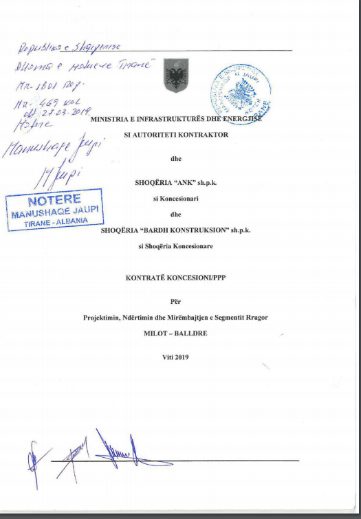 Interesi i llogaritur i kapitalit të investuar nga shoqëria do të përdoren për ndërtimin e tubit të dytë të tunelit, sipas specifikimeve teknike në ofertën e paraqitur si dhe deklaratës të datës 18.3.2019 të ofertuesit fitues “ANK”, shpk. Sipas propozimit të rishikuar financiar, sipas deklaratës të datës 19.3.2019, norma e interesit e llogaritur për gjitha burimet e financimit të përcaktuara më sipër është 5%. ANK shpk do të ndërtojë këtë rrugë sipas kontratës me shoqërinë “Bardh Konstruksion”, shpk, në pronësi, firma e parë të Agim Kola dhe e dyta e Badhokës Kola. “Bardh Kontruksion” në QKB është regjistruar si objekt aktiviteti: Projektim, ndërtim, operim dhe mirëmbajtje e segmentit rrugor Milot-Balldre që në 6 nëntor 2018. Kjo firmë është kompani në pronësi të ANK, si ortaku i vetëm në vlerën e 100% të aksioneve. ANK ka një kapital 405.000.000 lekë. Ky projekt përfshin kontratën për ndërtimin dhe mirëmbajtjen e segmentit rrugor Milot-Balldren, me gjatësi 15 km + 570.35 m, si dhe rrugët dytësore e lidhëse për të mundësuar lëvizjen e banorëve dhe akses në rrugën kryesore, me gjatësi 9.5 km. Në këtë projekt përfshihet ndërtimi i dy urave dhe ndërtimi i tunelit me dy tuba, si më poshtë vijon: 1. Ura e Matit 620 m 2; Ura e Drinit 223.4 m; Tuneli në Malin e Rencit 850 m.