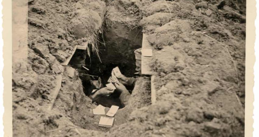 Ushtarët Adam Diemer dhe Adolf Fischer, duke luajtur me letra dhe duke u fshehur nga sulmet ajrore në perëndim të Bryansk, Rusi, në verën e vitit 1941, ku e gjithë bota ishte nën kthetrat e Luftës së Dytë botërore. Fotografia është bërë nga një ushtar i Divizionit të 18-të siç përcakrohej ndarja aso kohe.