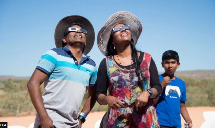 Qielli mbi Exmouth në Australinë Perëndimore u errësua për rreth 60 sekonda, kur Hëna hodhi një hije 40 km të gjerë mbi zonë.