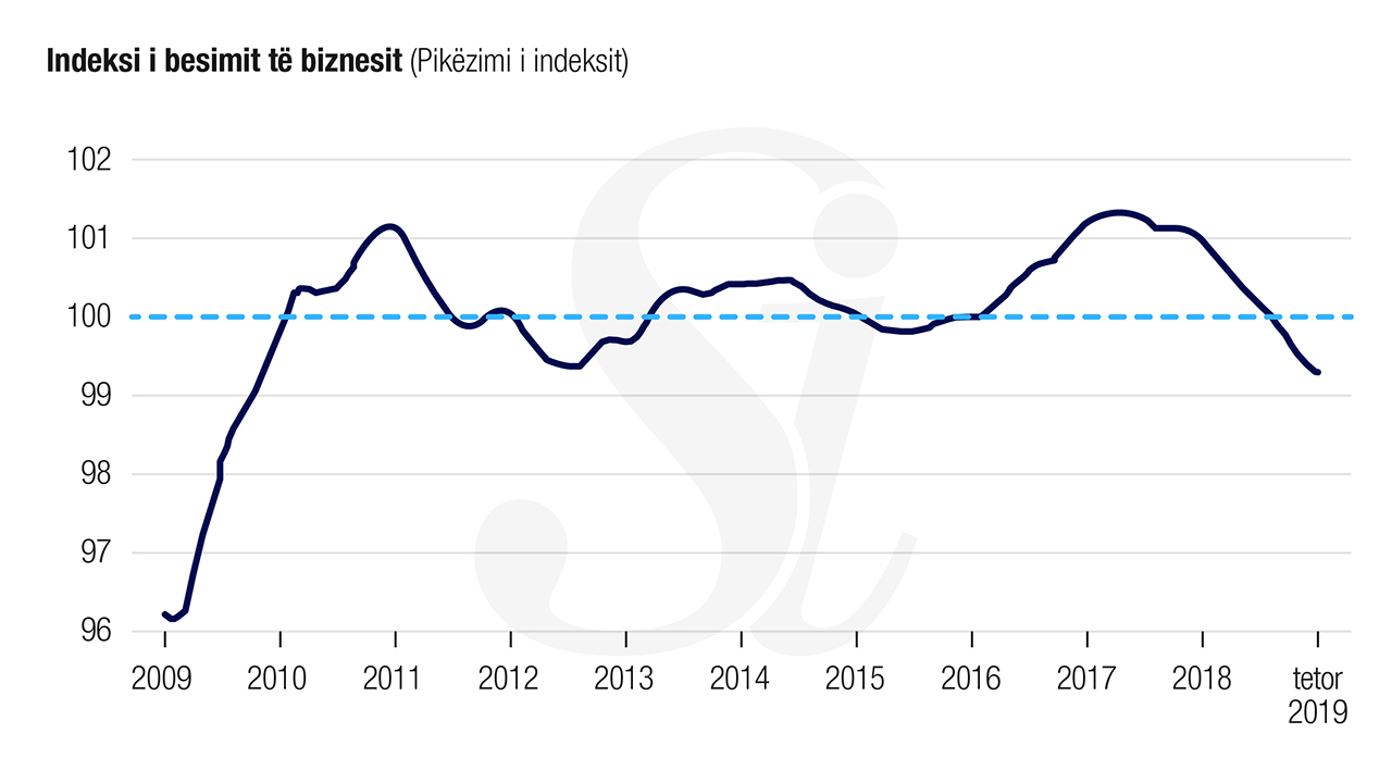 Besimi i biznesit, një pararendës i investimeve, është përkeqësuar gjithashtu gjatë vitit 2019.