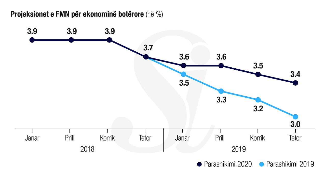 Për vitin 2020, FMN gjithashtu do të ulte parashikimin nga 3.7% në 3.4%
