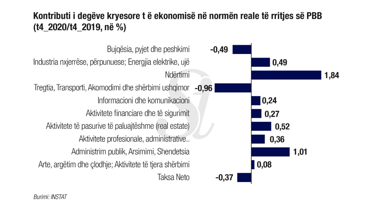 Kontributin më të madh në zgjerimin e ekonomisë gjatë tremujorit të fundit të vitit të kaluar e ka dhënë sektori i ndërtimit, me 1.8 pikë përqindje i cili regjistron një rritje prej rreth 18.5% në terma vjetorë.
