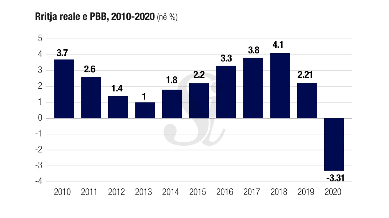 Ekonomia shqiptare ra me 3.31% në vitin pandemik 2020, shumë më e ulët se vlerësimet e qeverisë prej -4.4%.