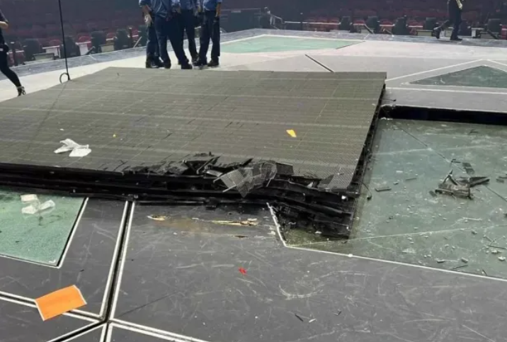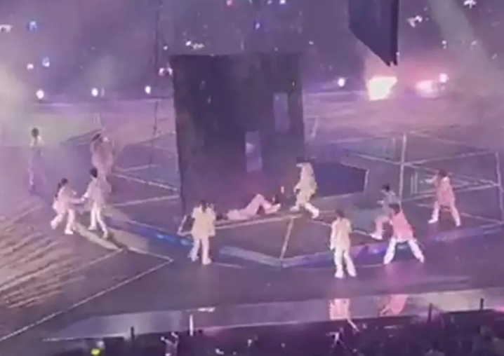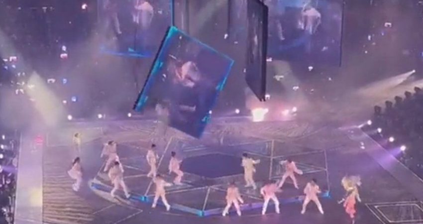 Një ekran gjigant ra dhe plagosi dy kërcimtarë para fansave të tmerruar në një koncert në Hong Kong nga grupi popullor i djemve Mirror.