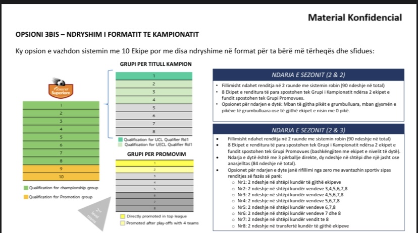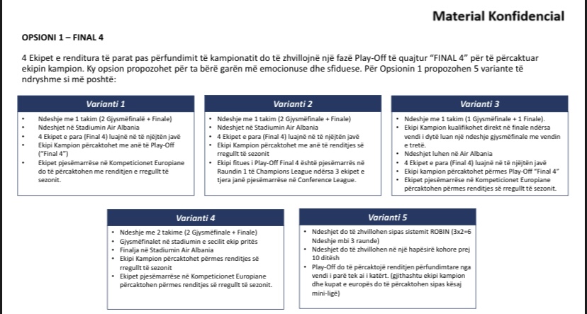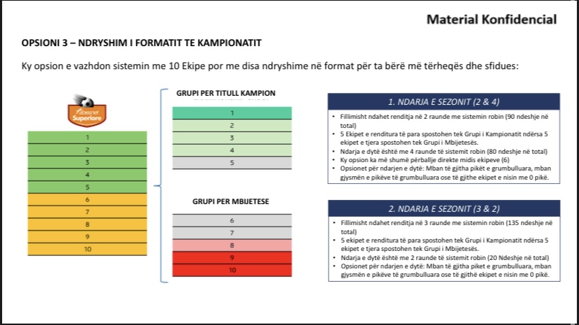 Këto skema dhe propozime janë kombinime të ndryshme, të cilat u prezantuan paraditen e së shtunë përpara presidentëve të klubeve të Superiores, të cilët për rreth 2 orë të mbyllur në “Shtëpinë e Futbollit” i diskutuan.