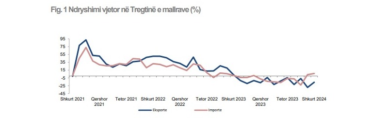 Ndryshe nga eksportet, importet e mallrave janë rritur, duke përkeqësuar deficitin tregtar.