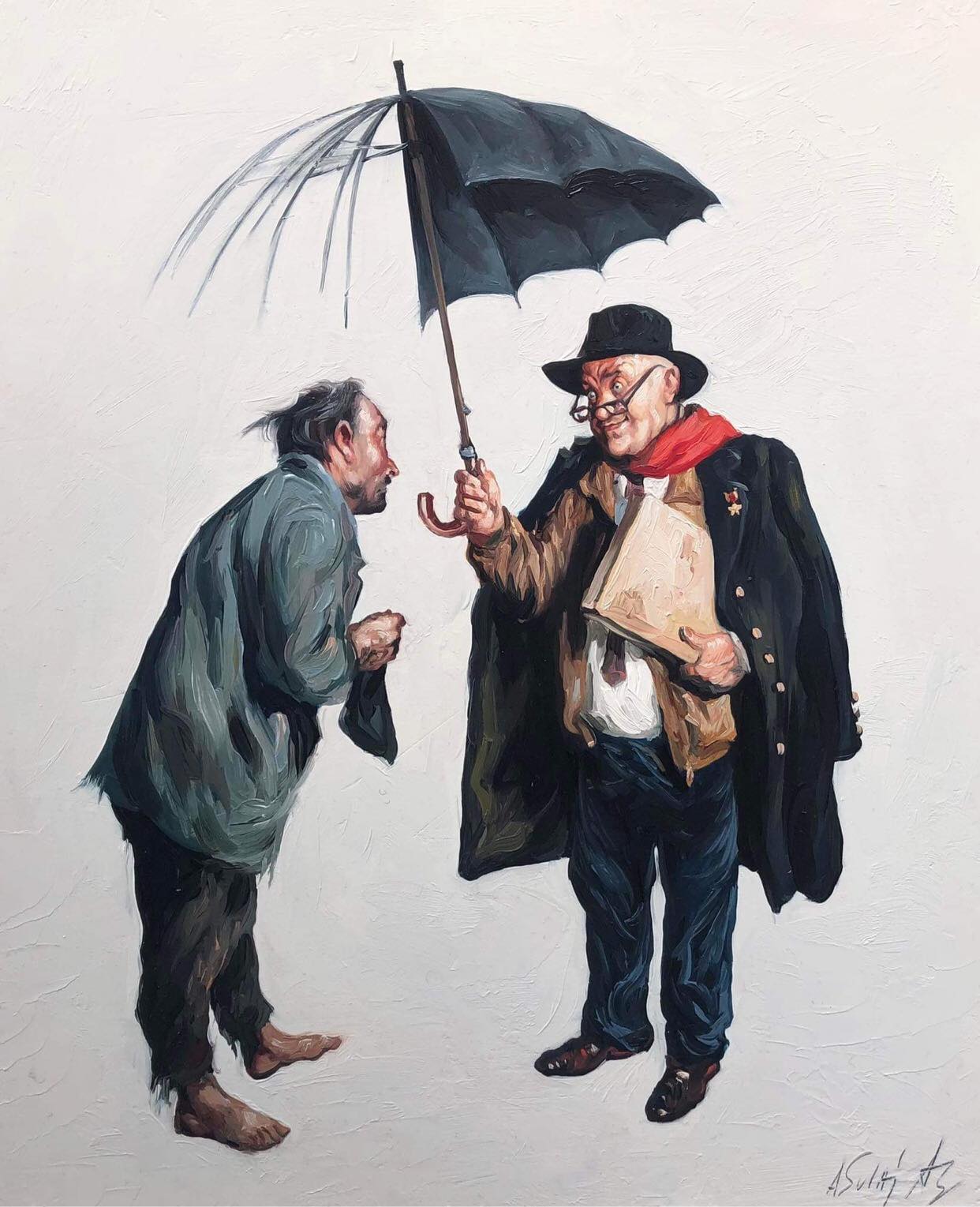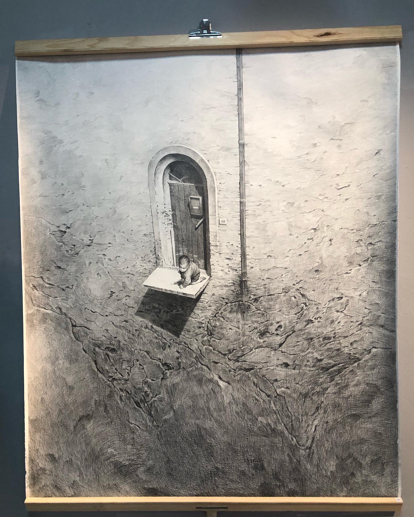Vepër e piktorit Agim Sulaj, “E ardhmja, një fëmijë që qëndron gati pezull përpara një bote të frikshme”