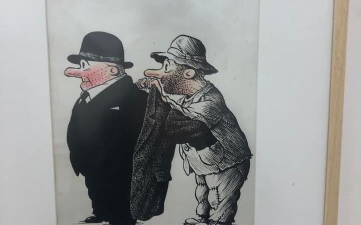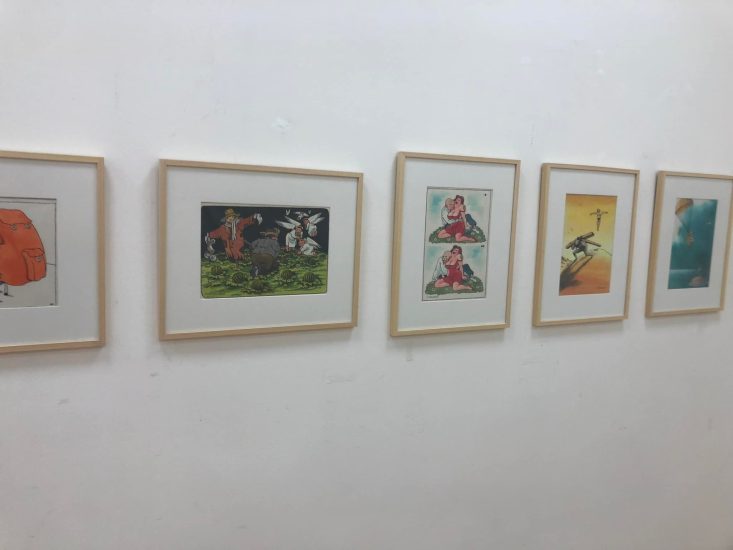 Në këtë ekspozitë me punime të ndryshme, nuk mungojnë dhe disa punë që janë pjesë e arkivit të shtetit të revistës “Hosteni” dikur, një revistë shqiptare e humorit dhe e satirës.