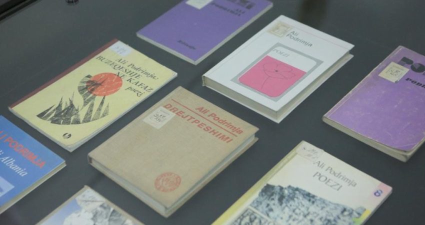 Ekspozita, e kuruar nga Etleva Domi, zv/drejtore e Bibliotekës Kombëtare, sjell kontributin shumëdimensional të Ali Podrimjes, si poet, përkthyes, redaktor, etj.