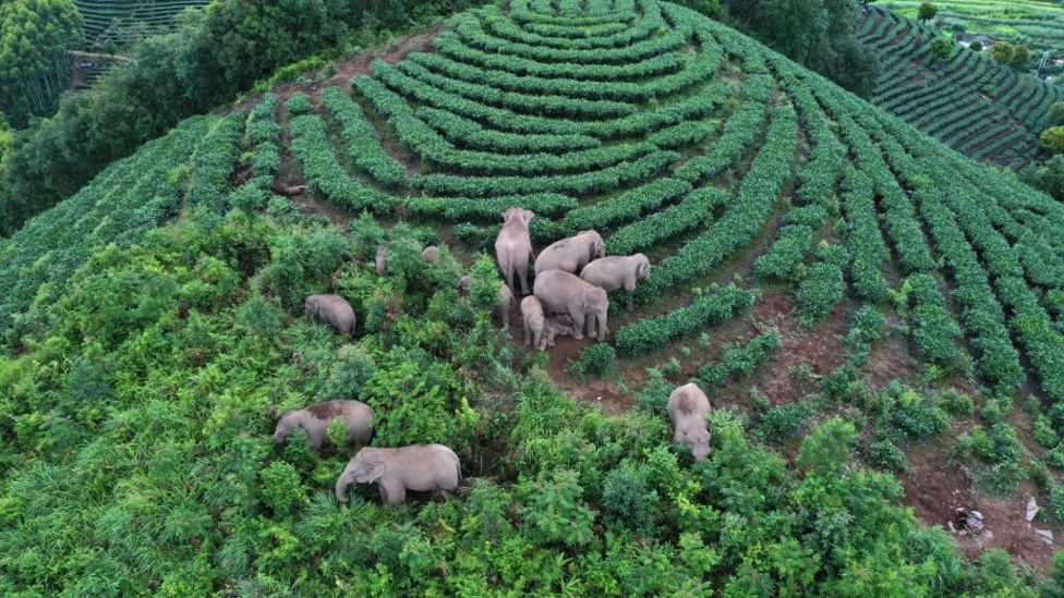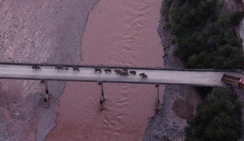 Një tufë elefantësh të egër aziatikë kalon lumin Yuanjiang, provinca Yunnan, Kinë. Tufa prej 14 elefantësh po kthehet në habitatin e tyre në Puer, sipas të dhënave zyrtare pasi kanë udhëtuar 1.300- km. Për 17 muajt e fundit, një tufë elefantësh endacakë në Kinë ka nisur një aventurë./BBC/