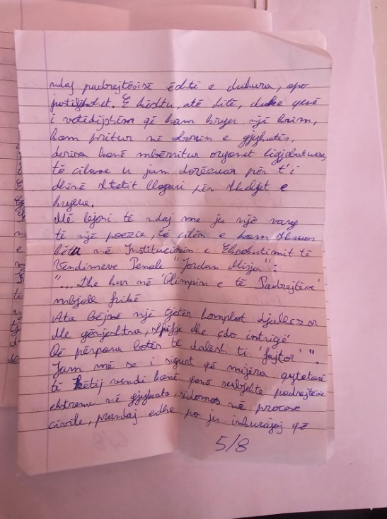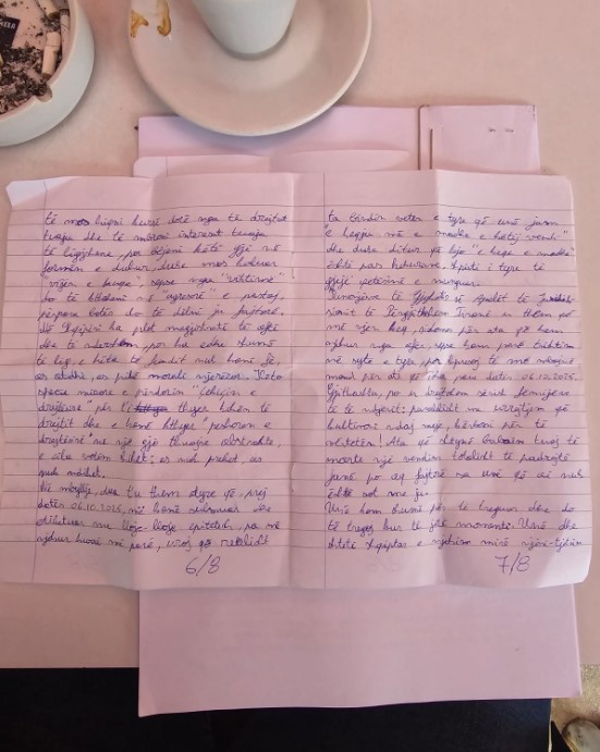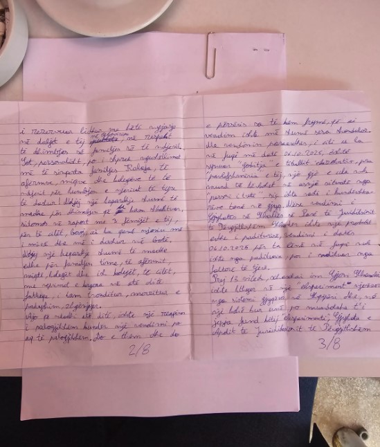 Shkambi, në letër ka vënë dhe një pjesë nga poezia e tij, të shkruar nga ambientet e paraburgimit, që paraqet versionin e tij të situatës së ndodhur mesditen e 6 tetorit 2025.