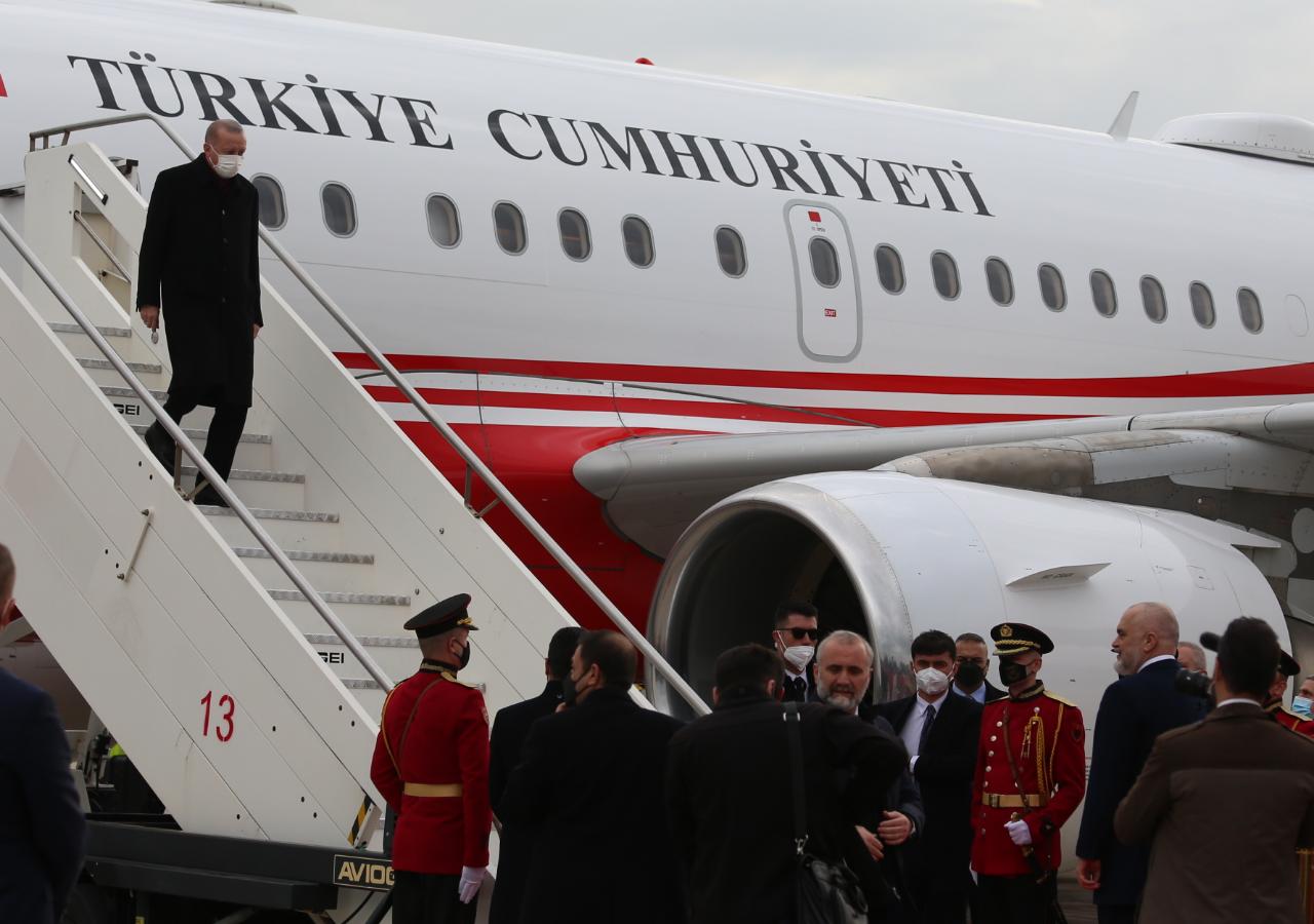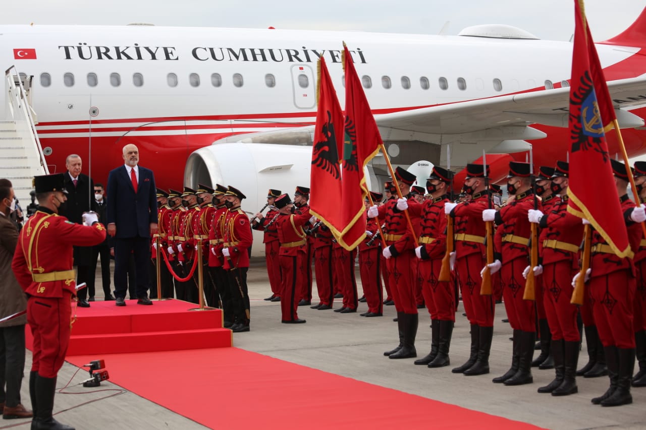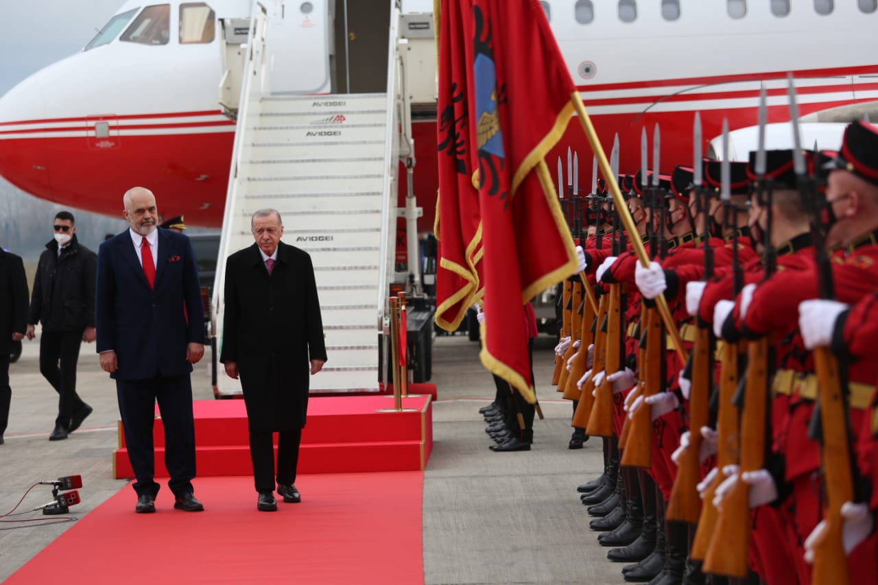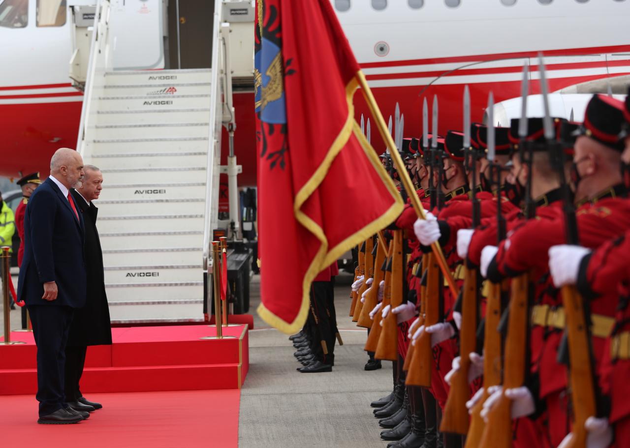 Presidenti i Turqisë, Recep Tayyip Erdogan ka mbërritur në Rinas ku është pritur me një ceremoni zyrtare nga kryeministri Edi Rama.