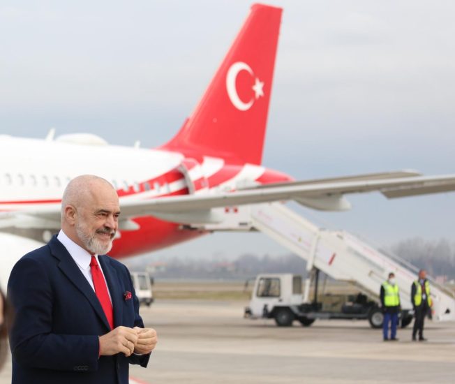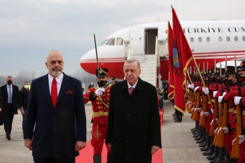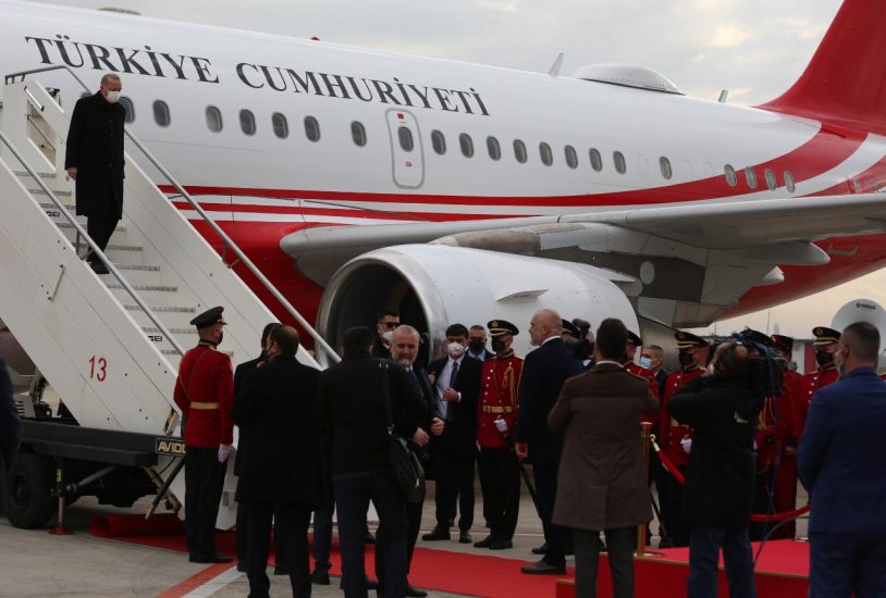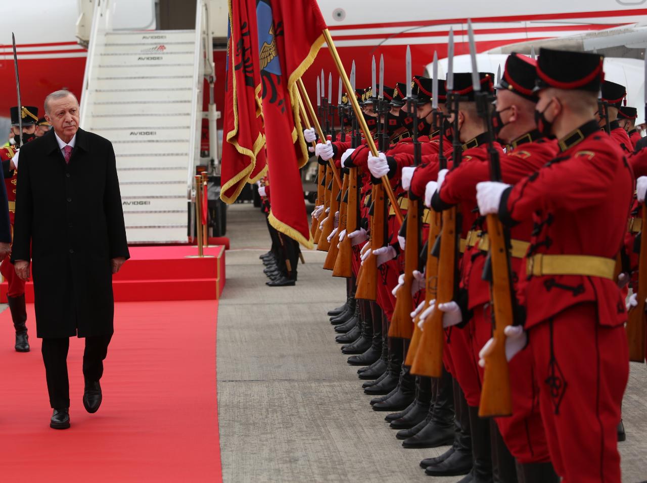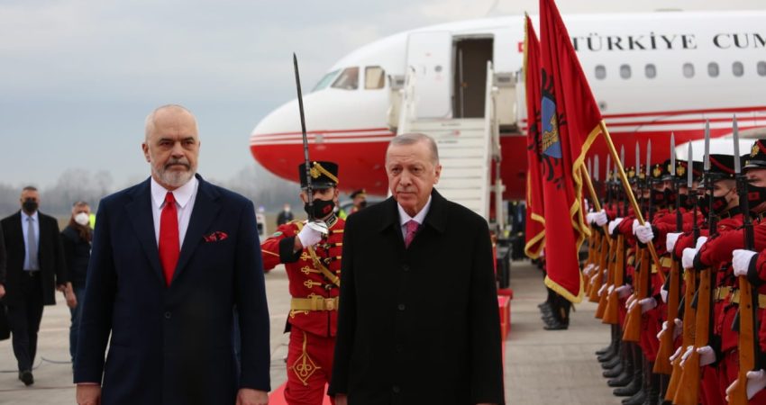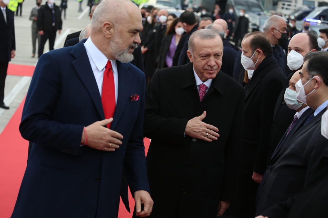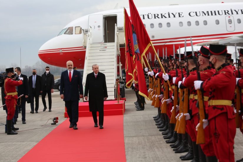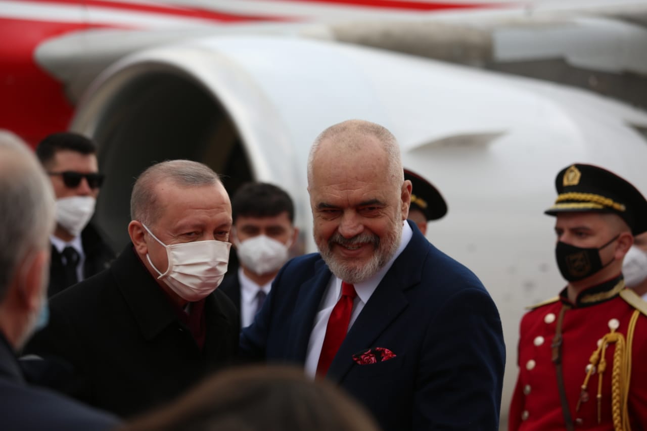 Presidenti i Turqisë, Recep Tayyip Erdogan ka mbërritur në Rinas ku është pritur me një ceremoni zyrtare nga kryeministri Edi Rama.