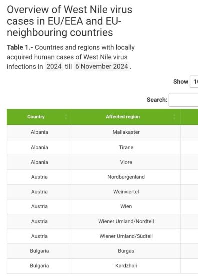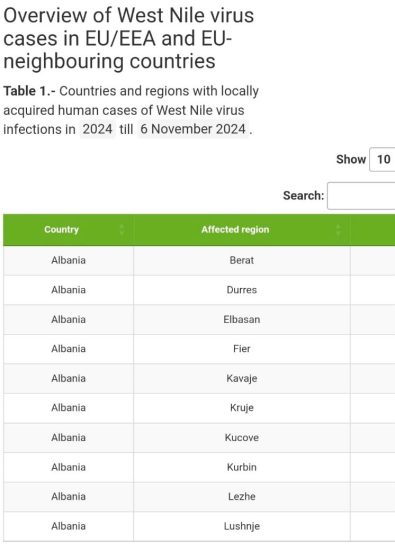 Nga Gazeta ‘Si’ – Shqipëria, së bashku me Kosovën, Maqedoninë e Veriut, Serbinë dhe Turqinë dhe Slloveninë e Spanjën, janë në listën e vendeve që kanë raportuar prezencë të etheve të Nilit deri në datën 6 nëntor 2024.