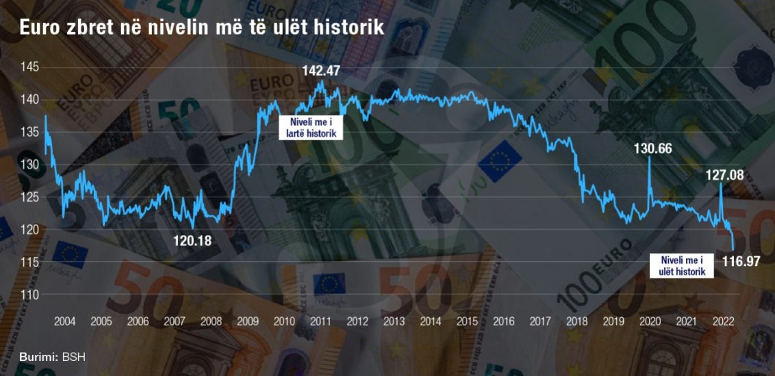Euro u shkëmbye me 117 lekë duke u barazuar me dollarin.