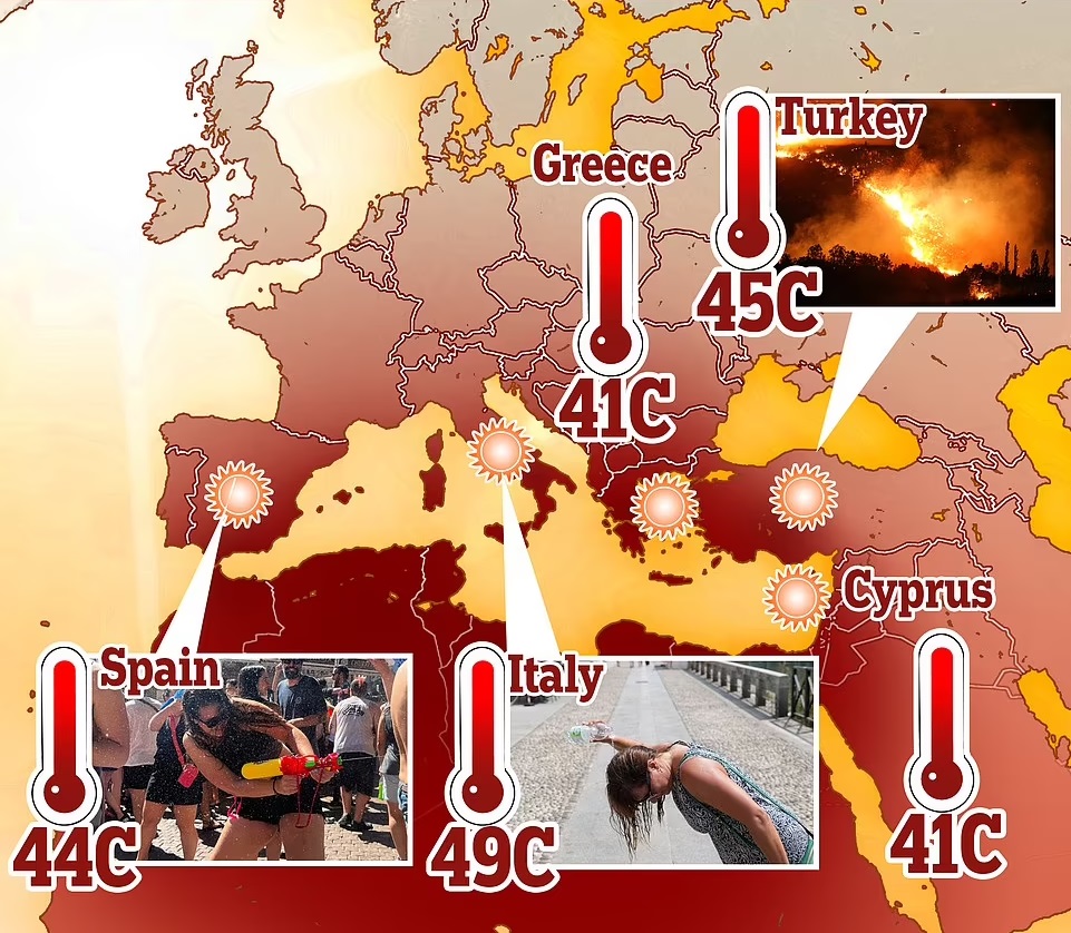 Një valë e fortë të nxehti pritet të sjellë temperatura rekord prej 49 gradë Celsius në Evropë këtë javë, ndërsa turistë në të gjithë Mesdheun po përgatiten për më shumë vapë. Qindra raste personash që u ka rënë të fikët nga vapa janë raportuar në Itali dhe Greqi, ndërsa zjarret kanë shpërthyer në ishullin spanjoll La Palma dhe Turqi gjatë javës së kaluar pasi temperaturat në të gjithë Evropën jugore arritën në 43 gradë Celsius. Por moti i përvëluar pritet të përkeqësohet edhe më shumë në ditët në vijim pasi një anticiklon i ri i quajtur Charon, i cili në mitologjinë greke ishte tragetuesi i të vdekurve, arriti në Evropë nga Afrika e Veriut të dielën mbrëma. Ishulli italian i Sardenjës pritet të përfshihet nga temperaturat më të larta deri në 49 gradë Celsius. Rekordi i mëparshëm prej 48.8 C ishte regjistruar në qytetin siçilian të Floridias më 11 gusht 2021.