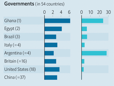 Po kush po e vuan barrën? The Economist ka renditur kompanitë dhe qeveritë sipas dy variablave; raporti borxhi ndaj të ardhurave dhe rritja e normave të interesit në 3 vitet e shkuara.