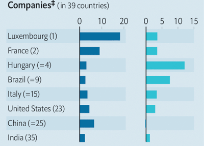 Në botën e biznesit, kërkesa e rritur konsumatorë ka rritur fitimet. Në 33 nga 39 vende, raporti borxh ndaj fitimit operativ ka rënë vitin e shkuar. Në të vërtetë, disa vende të botës duken çuditërisht të forta. Pavarësisht nga problemet e Adani Group, një konglomerat, India shënon rezultate të mira falë një raporti relativisht të ulët borxhi ndaj të ardhurave dhe një rritje më të vogël të normave.
