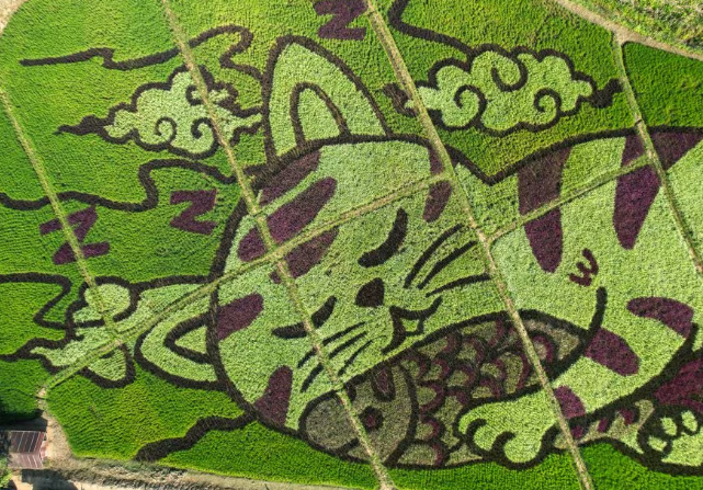 “Është thelbësore t’i poziciononi ato me saktësi dhe orizi gradualisht do të ndryshojë nuancat me kalimin e kohës,” shtoi ai, derisa në fazën përfundimtare të korrjes, orizi jep portretin e maces.