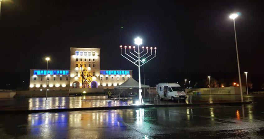 Nëse ju bie rruga nga Sheshi “Nënë Tereza” në Tiranë, mos u habisni kur në qendër të tij të shihni një shandan të madh me drita. Ajo është një Menorë (shandan hebre) gjigante, e cila është vendosur për me rastin e Festivalit të Dritave, Festën Hebraike “Hanuka”. Ceremonia e madhe për ndezjen e dritës së parë të Menoras (shandanit) u zhvillua sot pasdite, nën drejtimin e Kryerabinit të Shqipërisë, Yoel Kaplan.