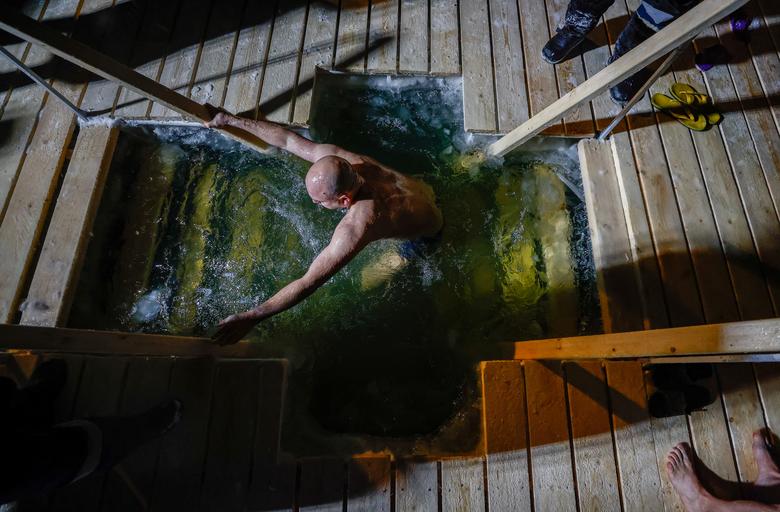 Në Rusi, tradita e do që njerëzit të zhyten në ujë të akullt ndërsa në Ukarinë, festuesit e guximshëm dhe të përkushtuar duhet të gjejnë një vend të përshtatshëm për të prerë një vrimë në formë kryqi në akull mbi një lumë ose pellg – pastaj të hidhen brenda.