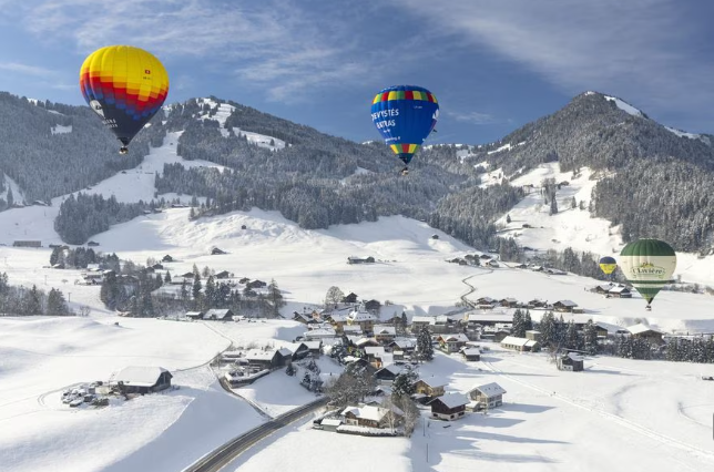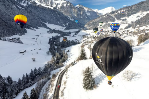 I zhytur në një luginë të rrethuar nga bora, qyteti zviceran i Chateau d’Oex ‘zgjohet’ për të pritur një festival të balonave që tërheq mijëra spektatorë.