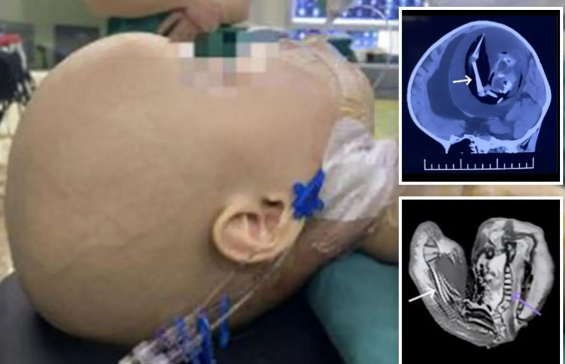 Grafitë treguan se simptomat ishin të shkaktuara nga një fetus 18 cm që rritej në trurin e saj të cilit i ishin zhvilluar shtylla kurrizore, organet dhe gishtërinjtë. Neurokirurgët ia dolën ta hiqnin nga kafka, por vetëm 12 ditë më vonë vogëlushja ndërroi jetë si pasojë e dëmtimit të rëndë në tru.