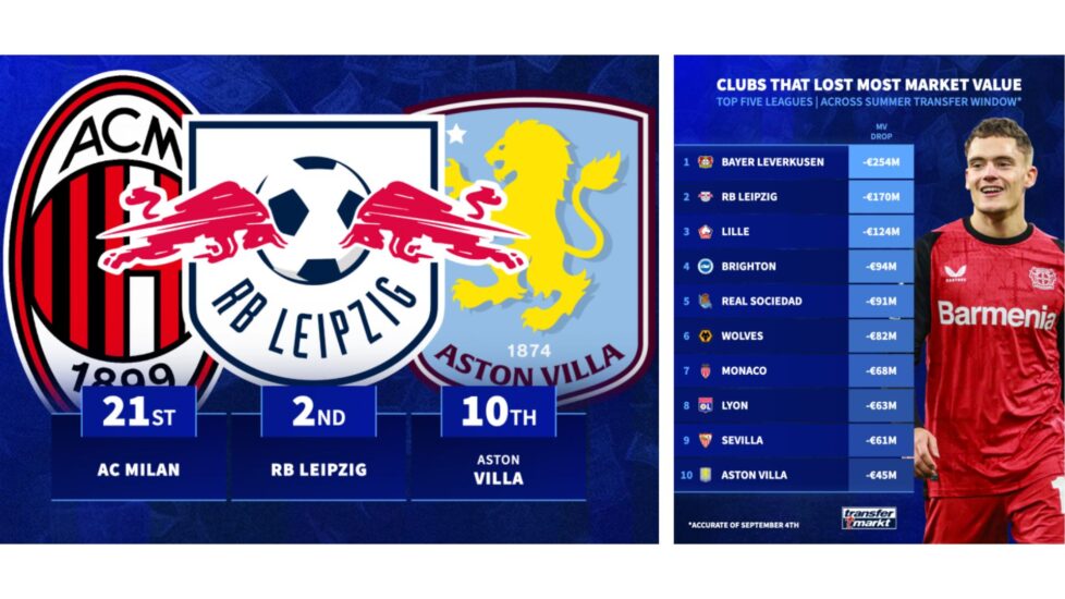 Si dhe 8 lojtarë nga formacioni i parë që nuk janë më në skuadër. Leverkusen humbi 254 milionë euro gjatë këtyre transferimeve – më shumë se çdo klub tjetër – për shkak të largimeve të Florian Wirtz, Jeremie Frimpong, Jonathan Tah dhe Granit Xhaka mes të tjerëve.