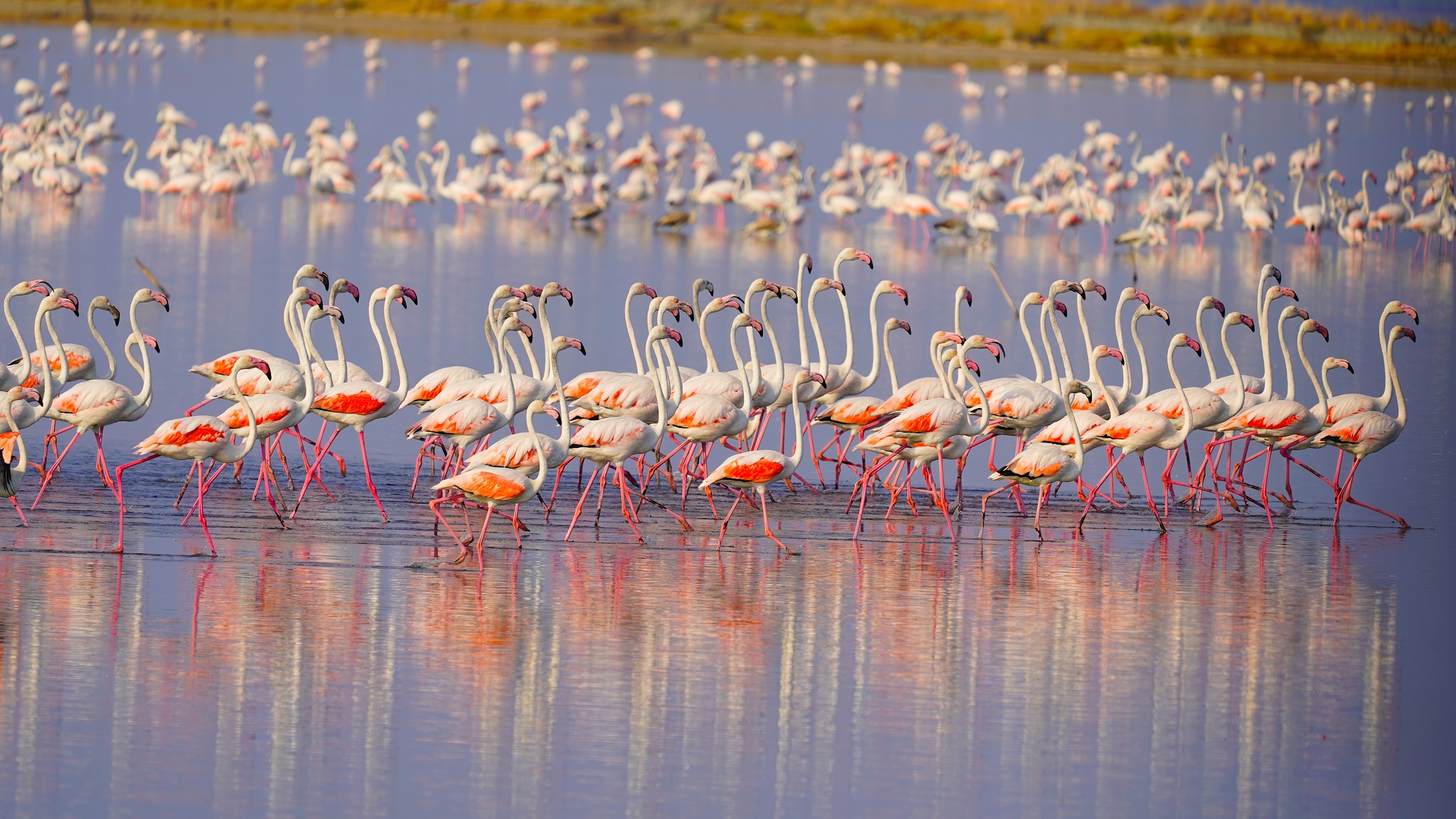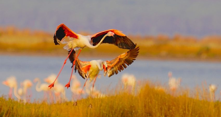 Flamingot vallëzojnë në lagunën e Nartës