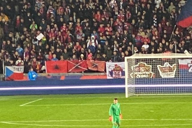 Provokimi i turpshëm ndodhi në tribunën e ultrasve çekë, ku janë vendosur flamuj serb në brendësi të hartës së Kosovës, si dhe simbolet e Shqipërisë që janë kthyer përmbys, madje në disa prej tyre, janë vendosur kryqe tek pjesa e shqiponjës dykrenare.