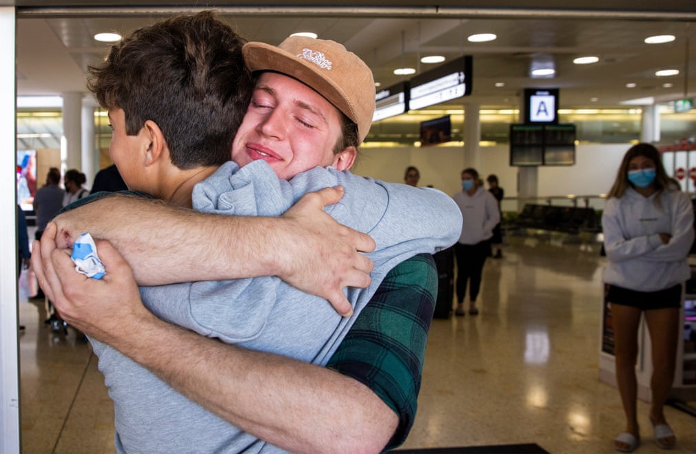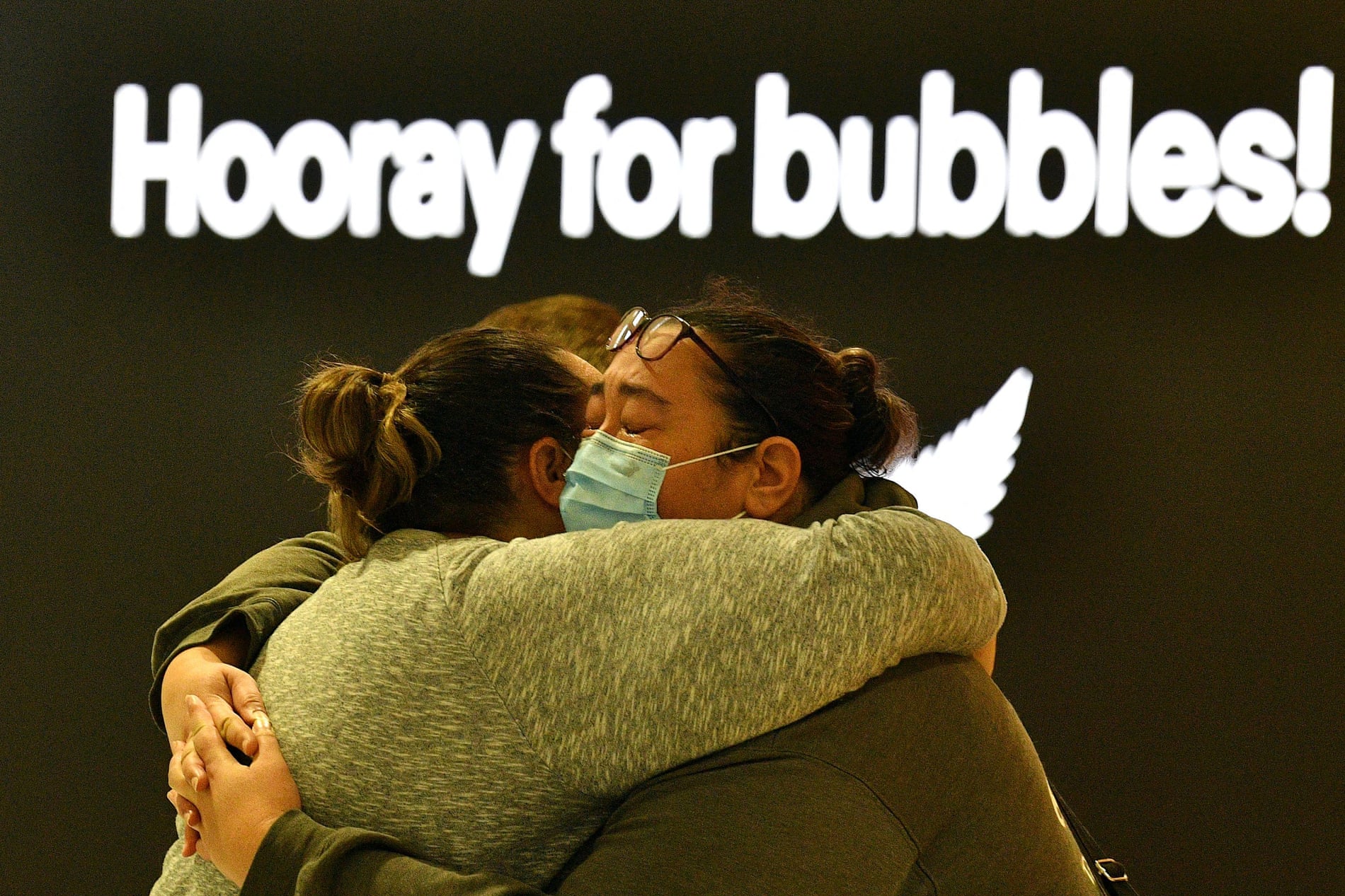 Të hënën në mëngjes u hapën fluturimet pa karantinë mes Australisë dhe Zelandës së Re dhe fotografët kanë arritur të shkrepin momente përqafimesh, lotësh, takime të munguara dhe puthje mes pasagjerëve.
