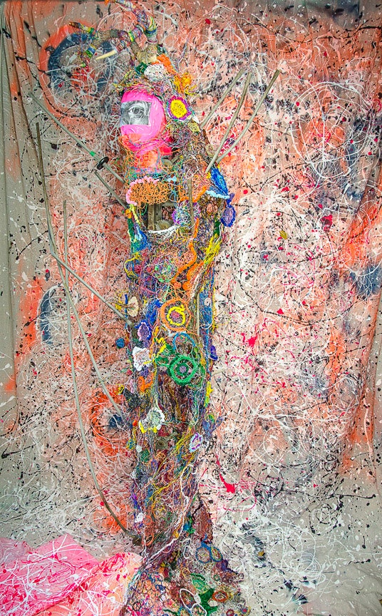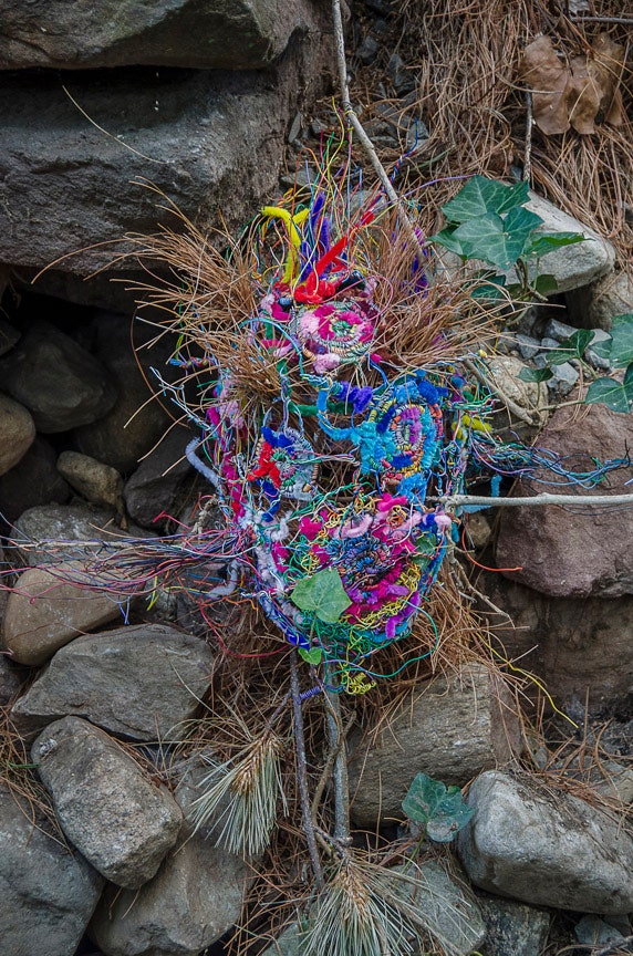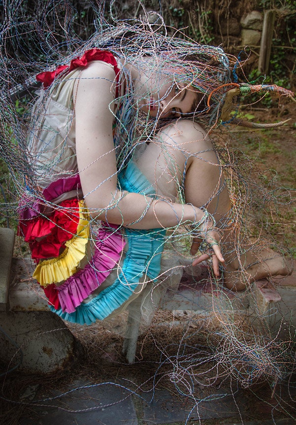 “E vështroja për javë të tëra duke menduar se çfarë mund të bëja me kaq shumë tel, kështu që pyeta fqinjin tim nëse mund të merrja disa tela. Ai tha se po dhe kështu filloji projekti i parë, “Foleja e madhe blu” duke përdorur tela.