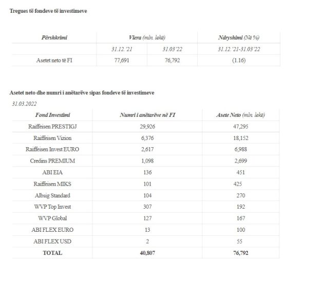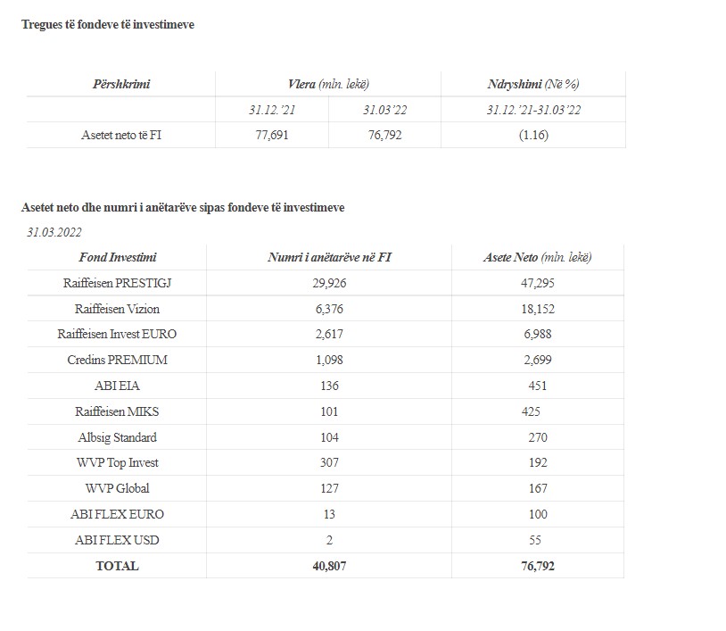 Numri i anëtarëve që kanë investuar në Fondet e Investimit më 31 mars 2022 është 40.807 me një rritje prej 1.88% krahasuar me 31 dhjetorin e 2021.