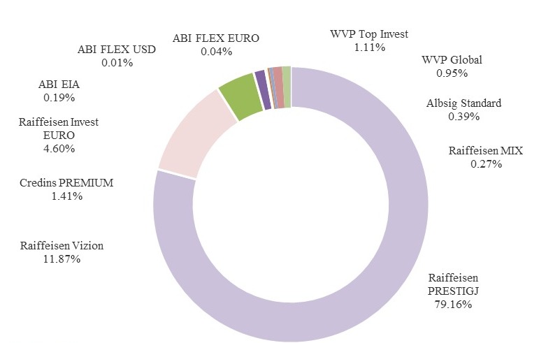 Ky treg dominohet kryesisht nga investimet në Obligacione Qeveritare, të cilat përbëjnë 70% të aseteve të fondeve. Aty operojnë 13 fonde investimi, ku pjesën më të madhe, si në numër anëtarësh dhe në vlerë investimi e ka grupi i Raiffeisen.