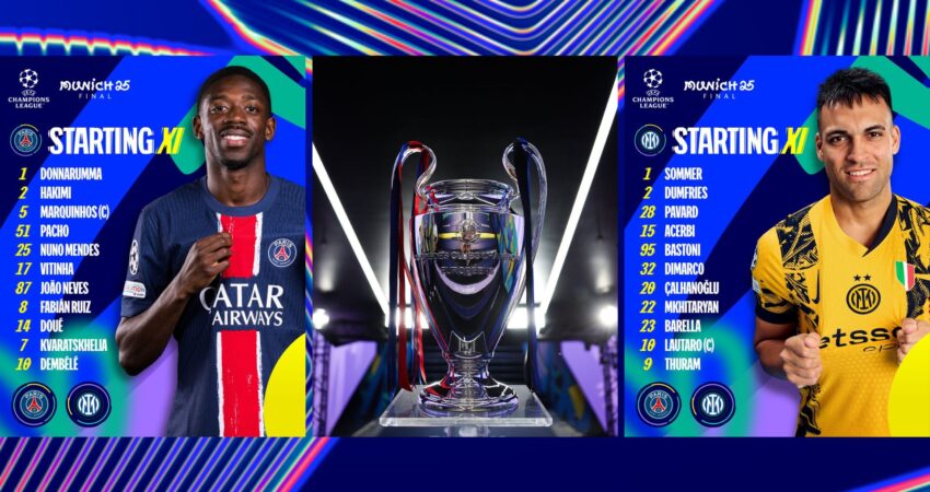 Kur duhet më pak se 1 orë nga starti i Finales së Champions League, Luis Enrique dhe Simone Inzaghi kanë shpallur formacionet. Francezët rrjeshtohen 4-3-3 me tre-dhëmbëshin Kvaratskhelia-Dembele-Doue në sulm. Ndërsa italianët rrjeshtohen në 3-5-2 me një mesfushë të ngjeshur dhe binomin e sulmit Martinez-Thuram.