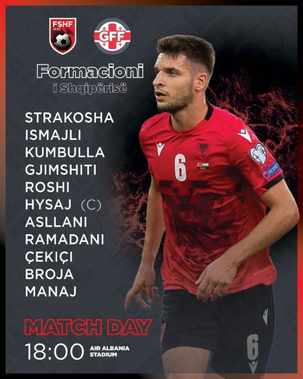 Federata Shqiptare e Futbollit ka bërë të ditur formacionin zyrtar të ndeshjes miqësore me Gjeorgjinë, që nis pas pak në stadiumin “Air Albania”.