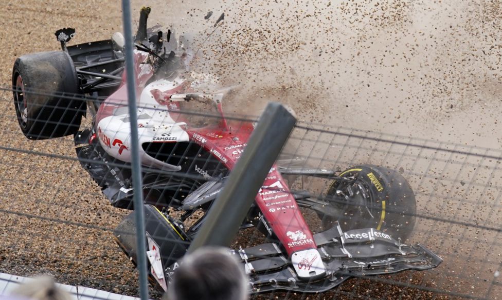 Makina e shoferit të F1 Zhou Guanyu u rrotullua disa herë me pothuajse 200 km/orë dhe u përplas në një pengesë të tribunës gjatë xhiros së parë në Silverstone.
