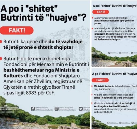 “Në vazhdën e postimeve të ministres mbi çështjen e Butrintit, duhet të sqarohet publiku se askush nga specialistët që po kundërshtojnë mënyrën se si Ministria e Kulturës po kërkon të japë një prej pasurive më të rëndësishme të trashëgimisë nuk ka denoncuar shitjen e tij. A mund të thotë ministrja e Kulturës cila është CV e këtij bordi që do administrojë Butrintin në fushën e trashëgimisë?”, thuhet në deklaratën forumit.