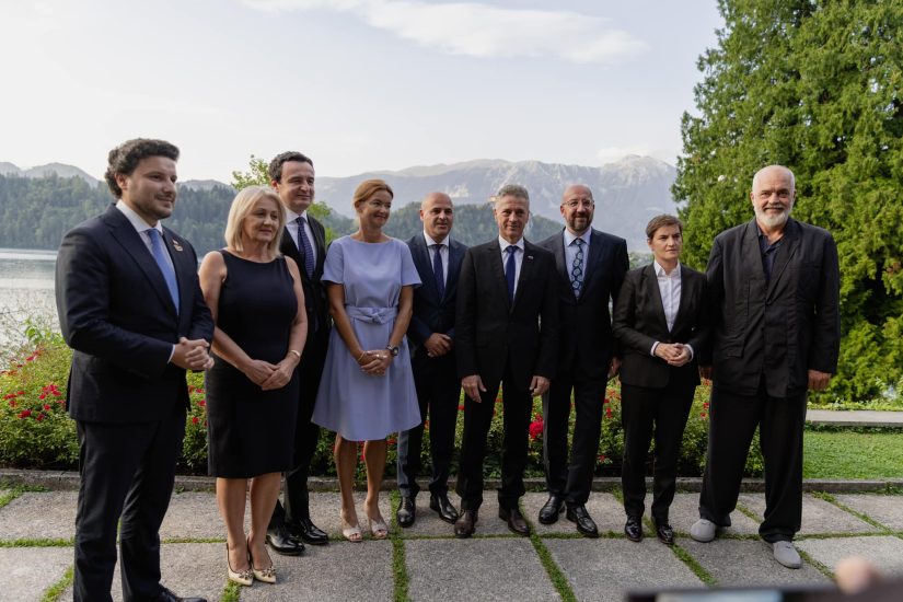 As në Prishtinë dhe as në Tiranë. U desh një konferencë në Slloveni që ata të shtrëngonin duart me njëri-tjetrin. Ky ishte ballafaqimi i parë mes dy kryeministrave që prej fillimit të tensioneve në veri në fund të muajit maj.