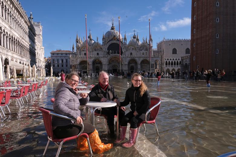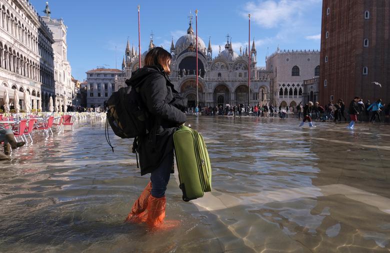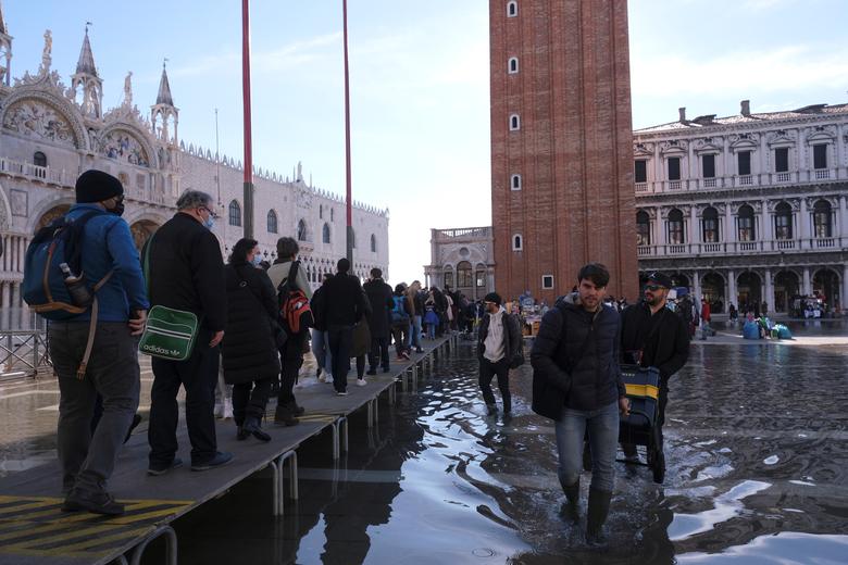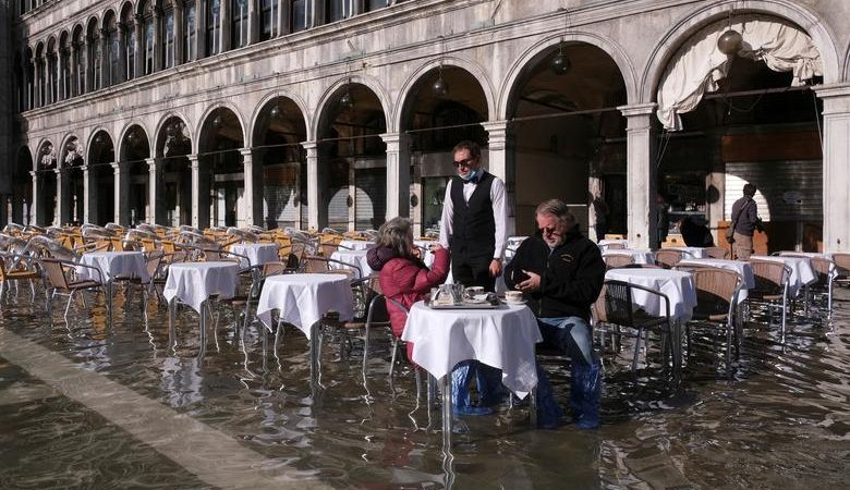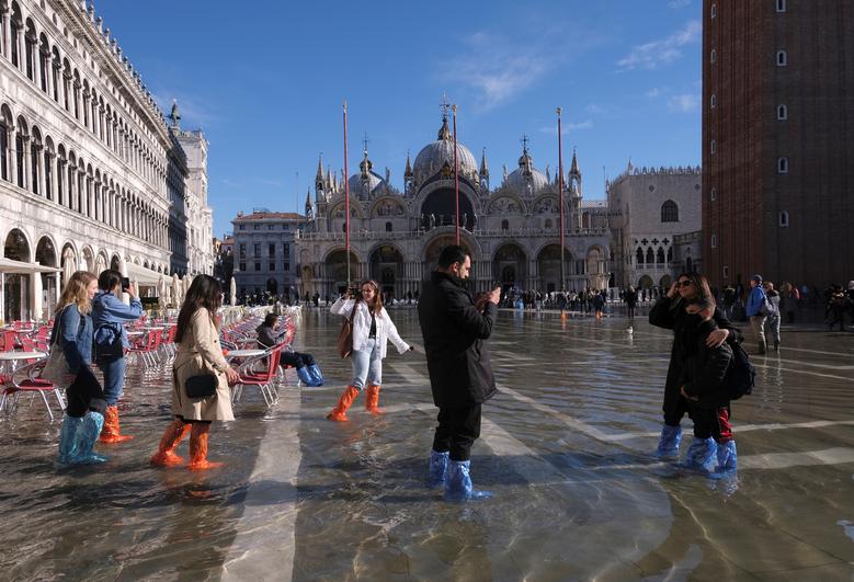 Sheshi i famshëm i Shën Markut i Venecias u  përmbyt gjatë një batice sezonale e zakonshëm për këtë periudhë të vitit por kjo nuk i ka penguar njerëzit të konsumojnë kafe ose të bëjnë fotografi.