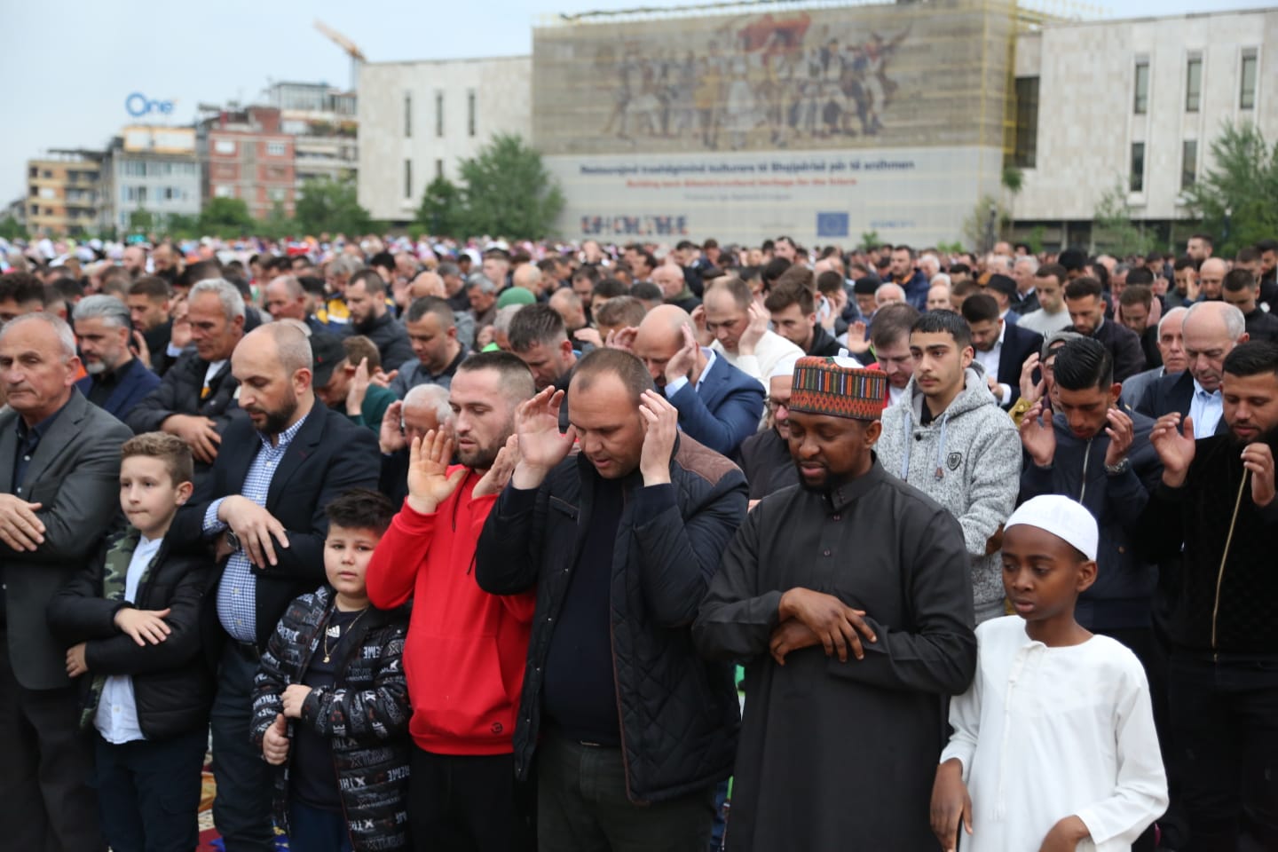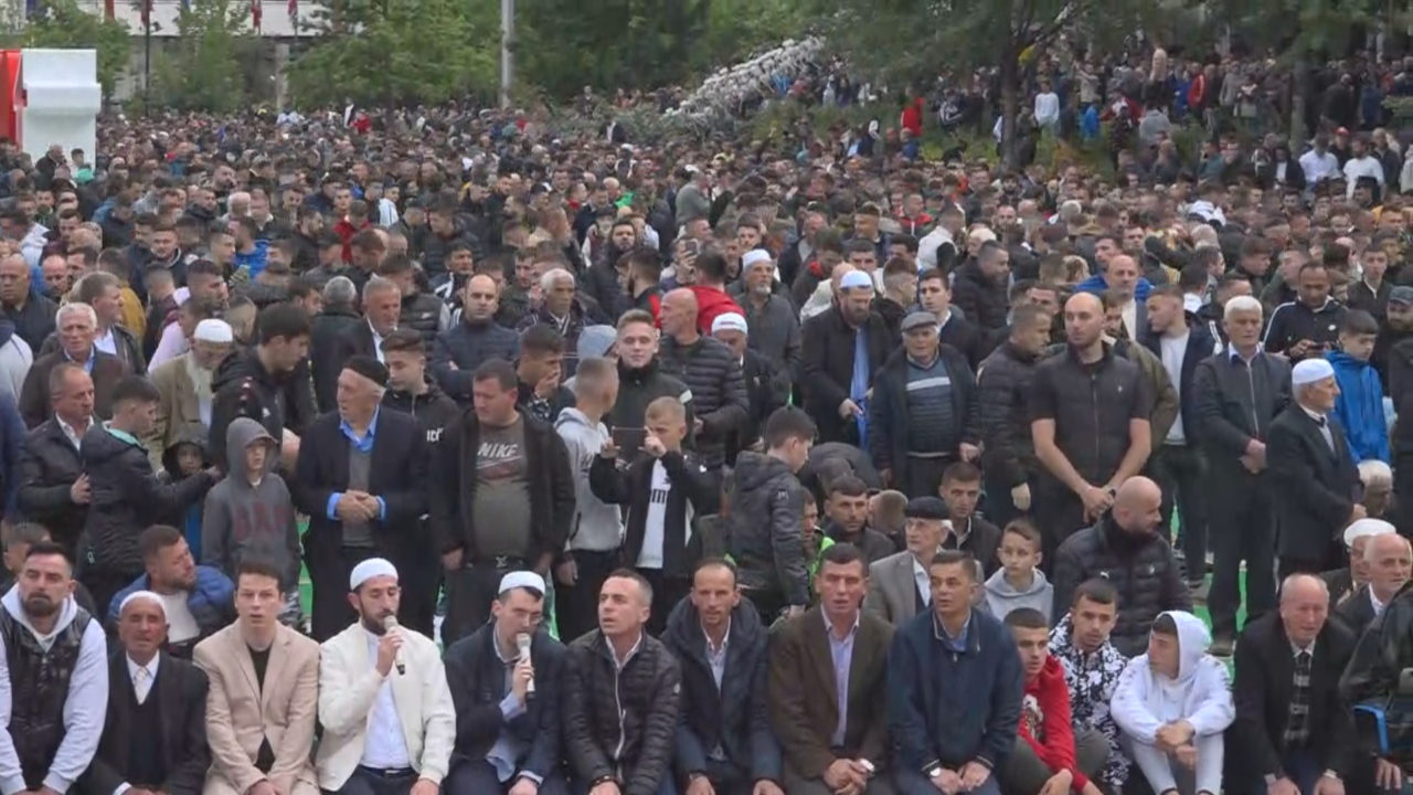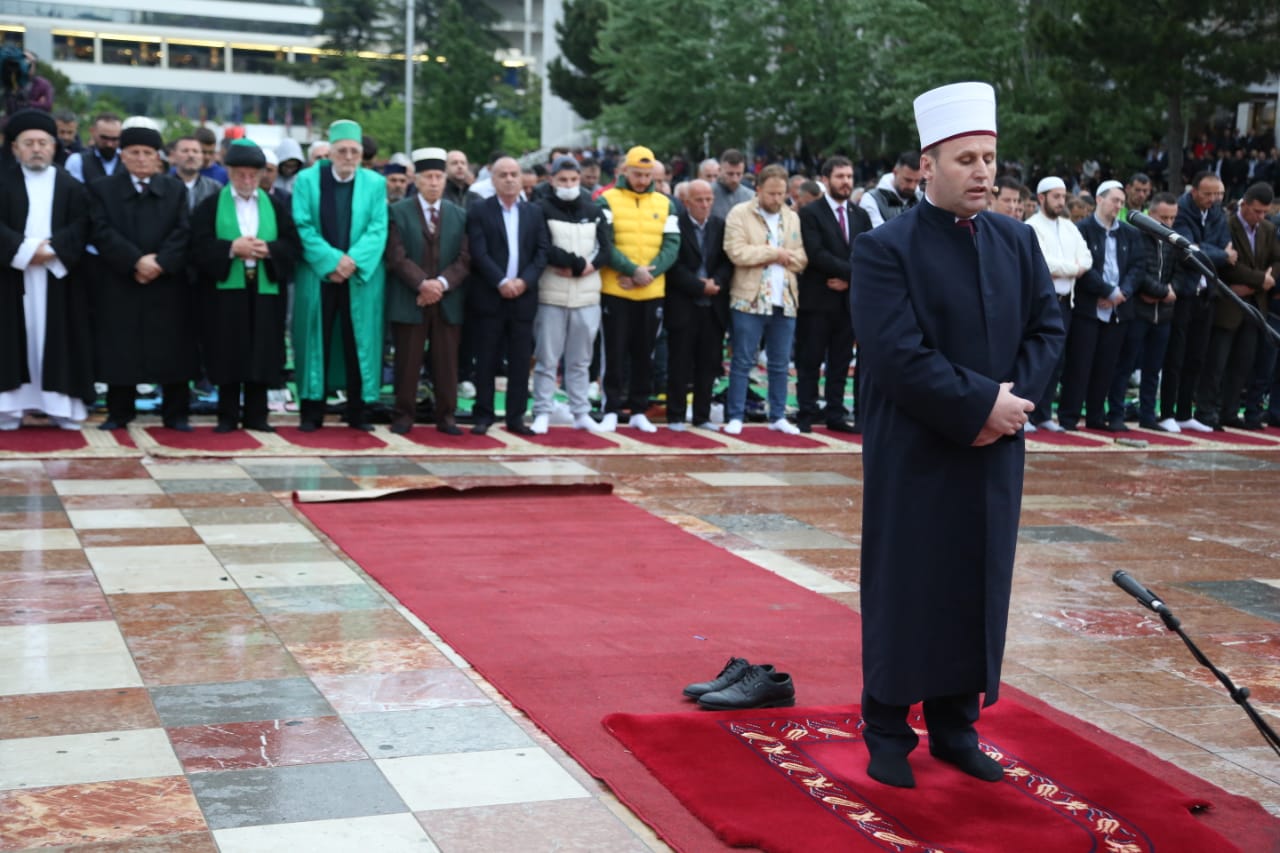 Gazeta Si – Mijëra besimtarë myslimanë kanë falur mëngjesin e të hënës namazin e Fitër Bajramit në sheshin ‘Skëndërbej’.