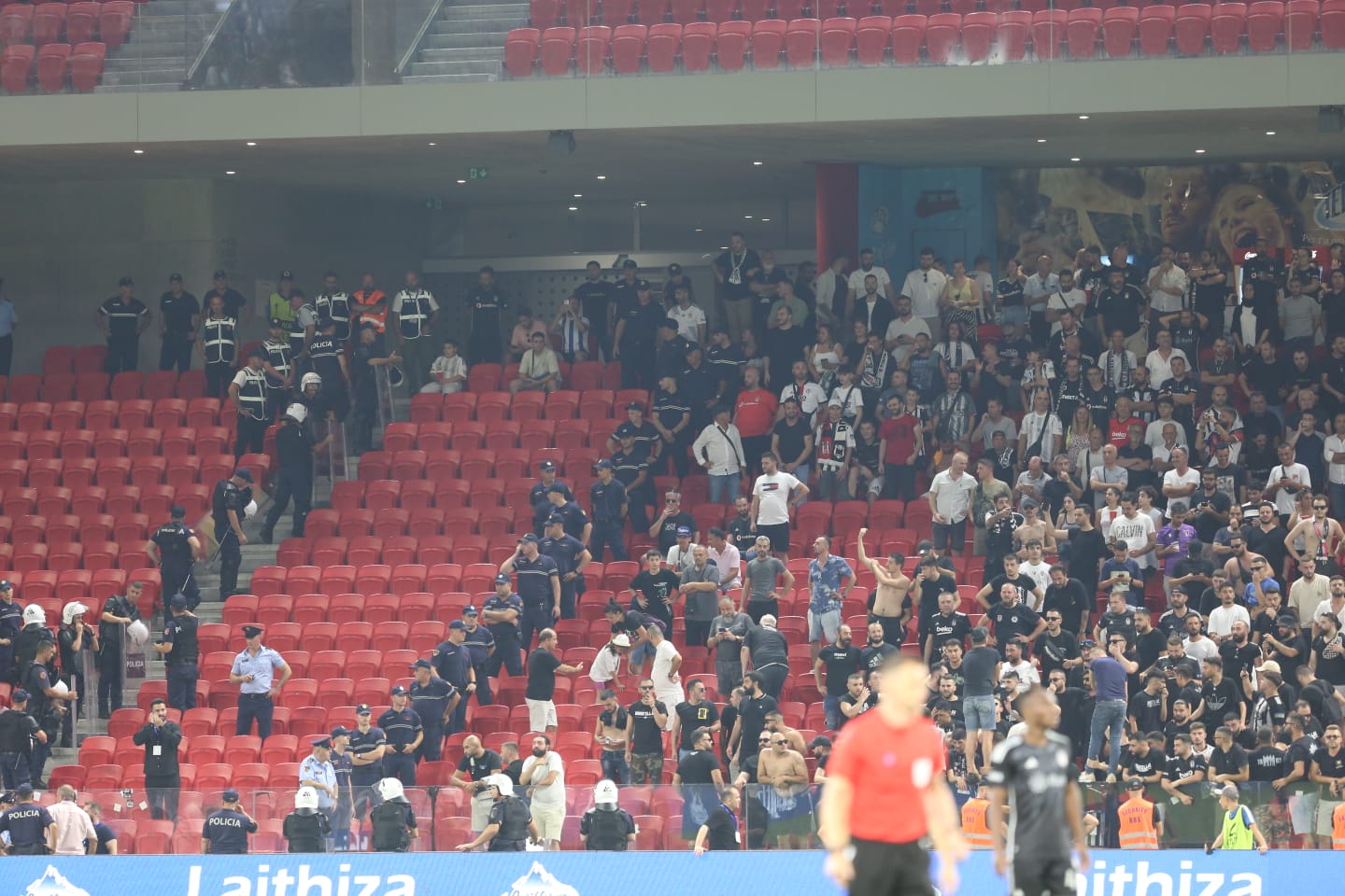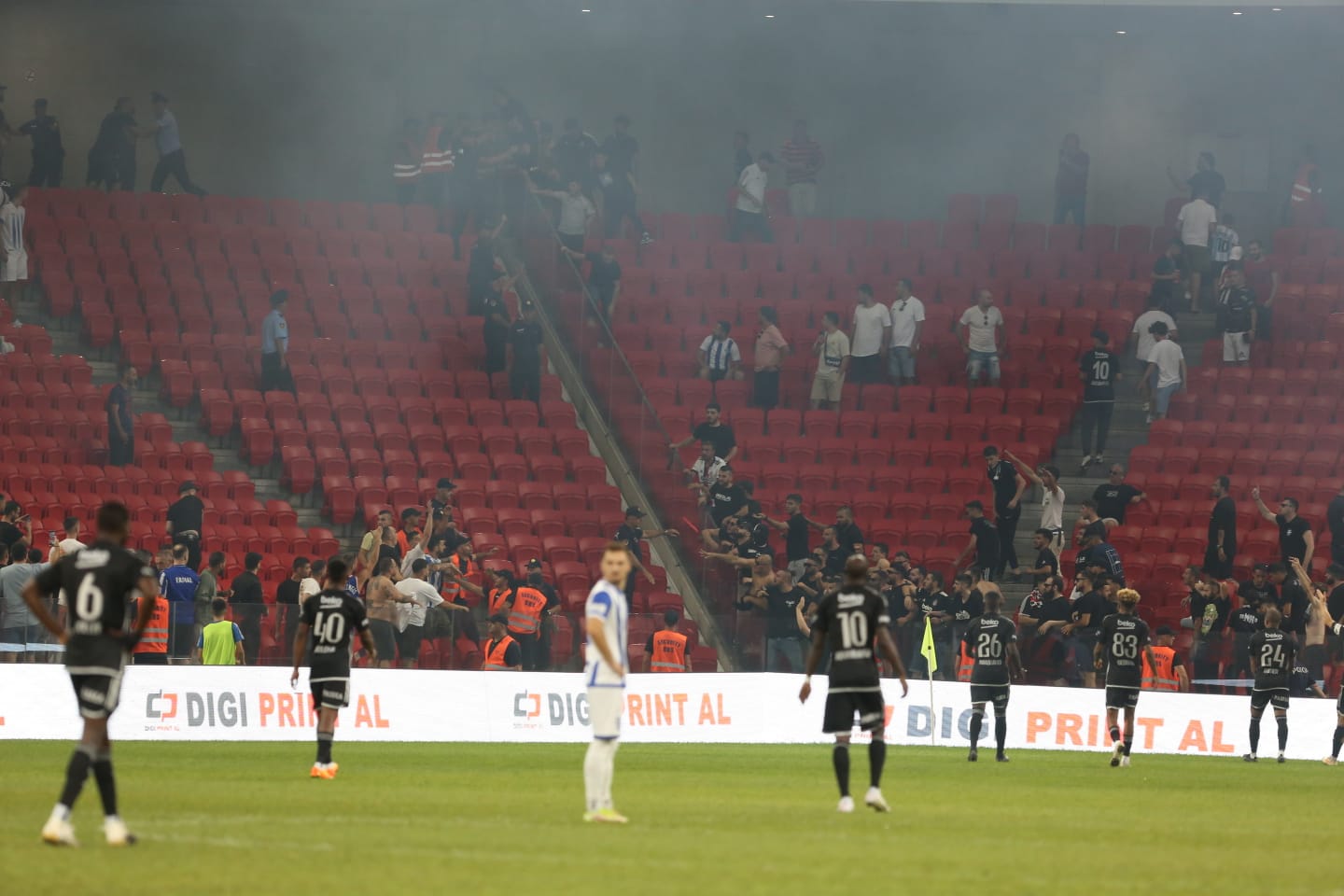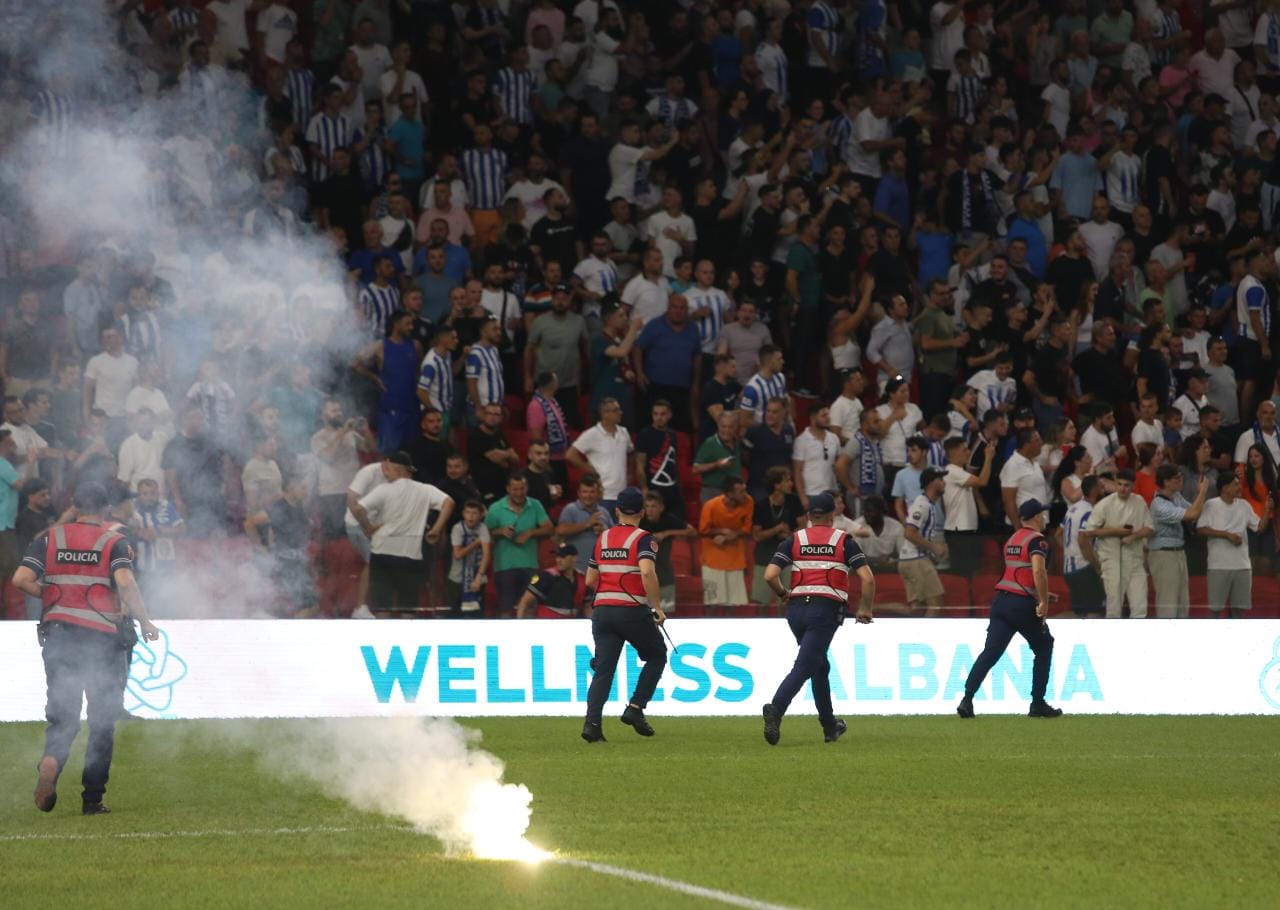 Forca të shumta policore ndërhynë dhe shtuan sigurinë në fushë, ndërsa arbitërit u detyruan të tërheqin për 15 minuta lojtarët.