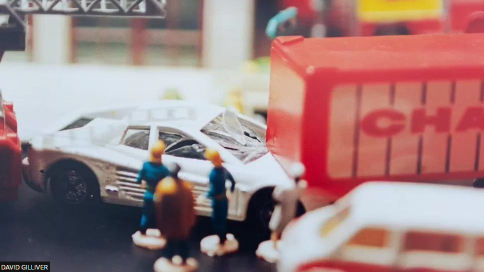 David bëri një foto të kaosit dhe e rikrijoi atë duke përdorur figura në miniaturë.